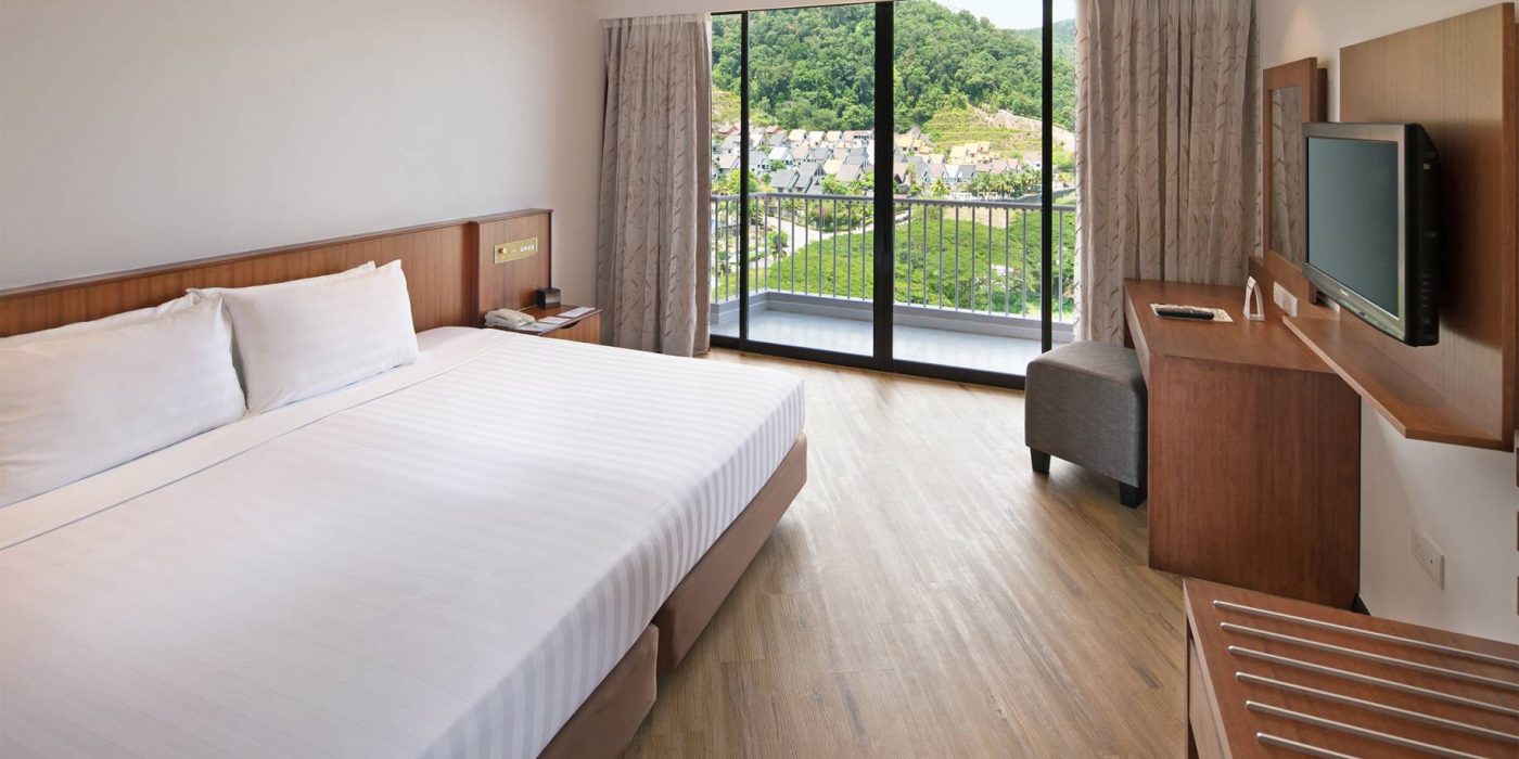Для размещения Bayview Beach Resort Penang предоставляет просторные и комфортабельные номера различных категорий, включая роскошные люксы и великолепный пентхаус с четырьмя спальнями. Площадь номеров составляет не менее 32 кв.м, что обеспечивает достаточно места для отдыха и расслабления. Номера декорированы со вкусом, обставлены уютной мебелью и оснащены современными удобствами. В интерьере прохладные, бежевые тона оживляются редкими вкраплениями ярких цветов, создавая ощущение райского уголка в самом сердце Бату Ферринги. Каждый номер располагает частным балконом. Из некоторых номеров открывается захватывающий вид на окружающие холмы, а из других — на пляж и далекий Малаккский пролив. Вы можете выбрать из: