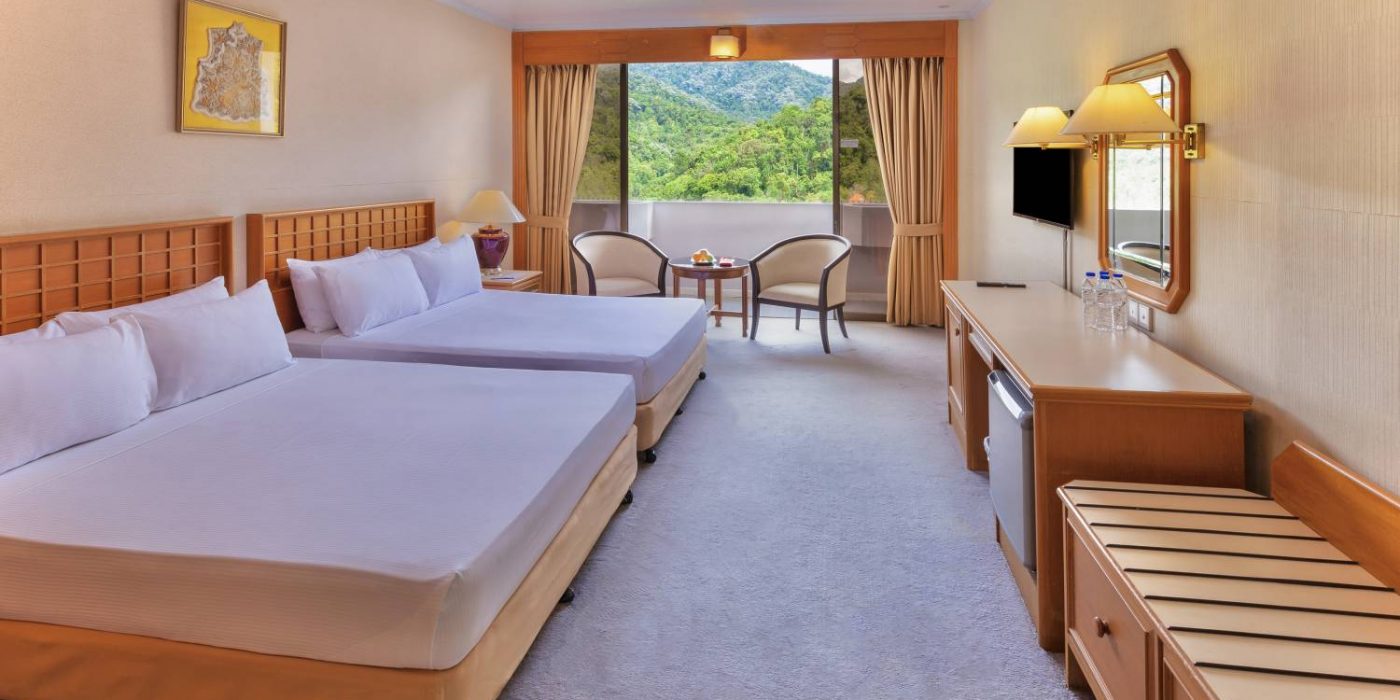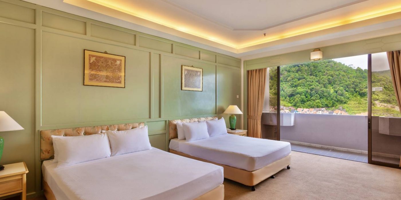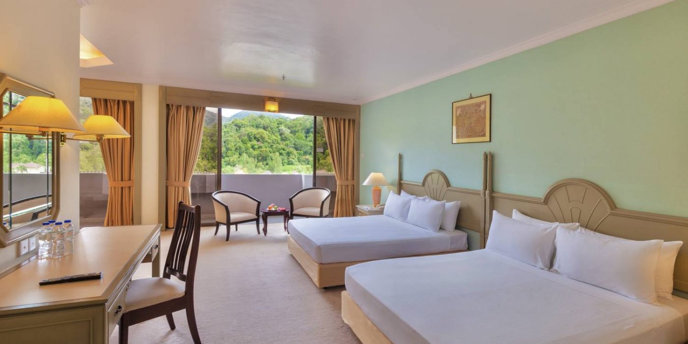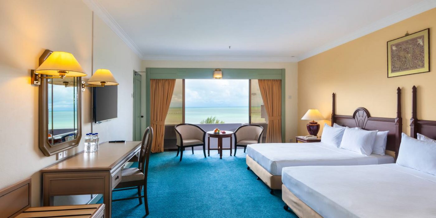 После насыщенного приключениями дня отдохните на балконе просторного номера или люкса Bayview Beach Resort Penang. Из некоторых номеров открывается вид на пышные зеленые холмы, а из других — панорамный вид на пляж и побережье. Для по-настоящему роскошного отдыха забронируйте пентхаус – роскошный номер с четырьмя спальнями и собственным бассейном на крыше.