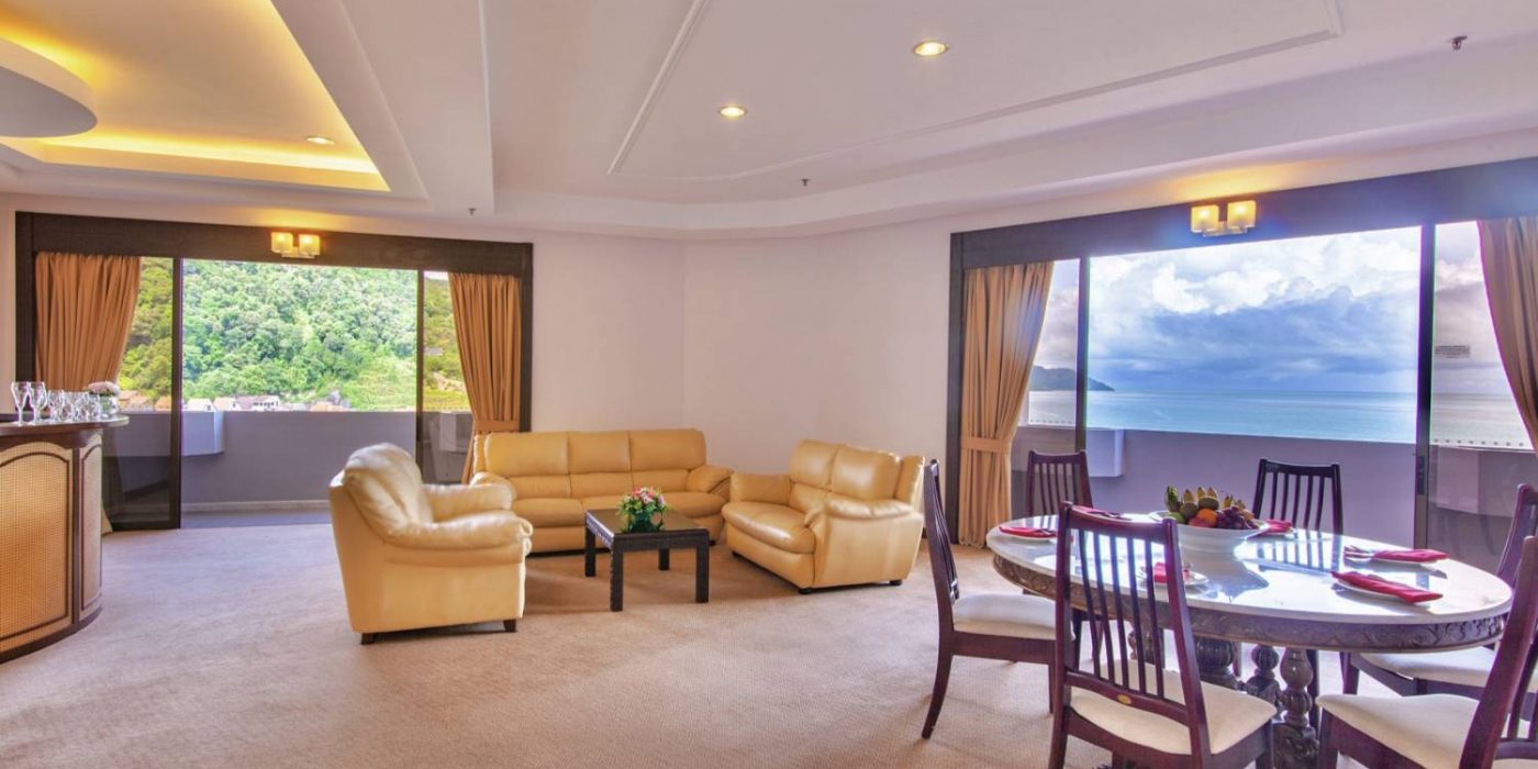 План - Penthouse — роскошный пентхаус площадью 380 кв.м, с видом на бирюзовые воды исторического залива и зеленые склоны холмов, состоящий из четырех спален с двуспальными кроватями в каждой, роскошной отдельной гостиной комнаты, столовой зоны с обеденным столом, ванных комнат, частного меблированного балкона, где прекрасные дневные виды дополняются вечерними, когда внизу мерцают огни города и его знаменитого ночного рынка.