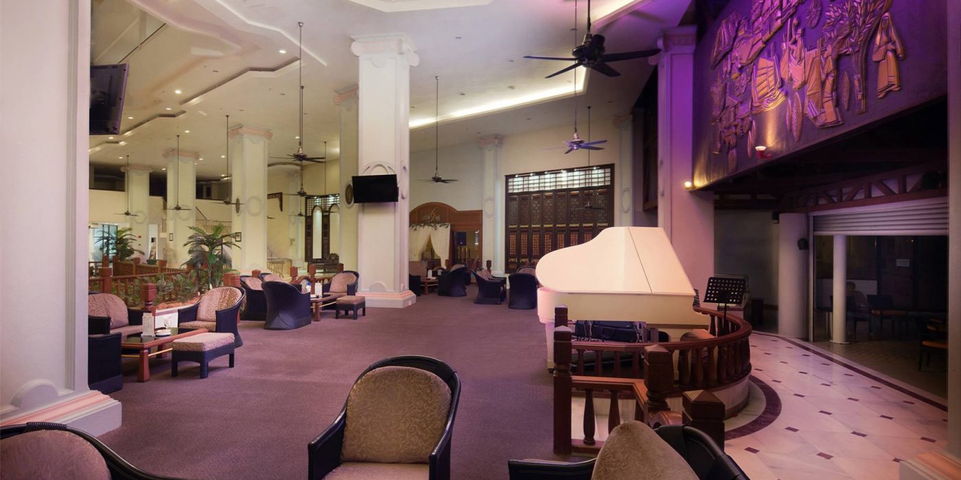 Высокие потолки, удобная антикварная мебель и пышные растения в горшках – лобби-бар воплощает элегантность колониального прошлого Пенанга, а белое пианино и плавно вращающиеся потолочные вентиляторы дополняют этот эффект.