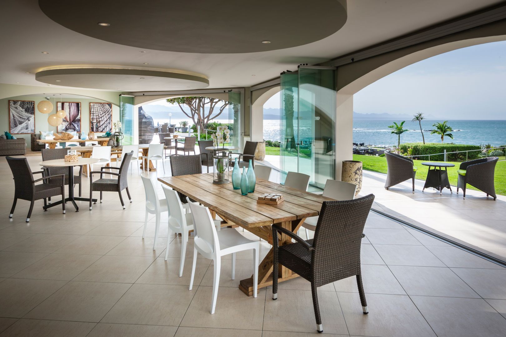 Ресторан Robberg Room, названный в честь знаменитого пляжа Робберг (Robberg Beach), расположенного всего в нескольких минутах ходьбы, предлагает одни из лучших блюд из морепродуктов и стейков в Плеттенберг-Бей. А если вы ищете лучшие виды Плеттенберг-Бей, то вам не найти ничего лучше, чем бар Sea Lounge. Виды ничем не загорожены, коктейли превосходны, а атмосфера оживленная каждый вечер.