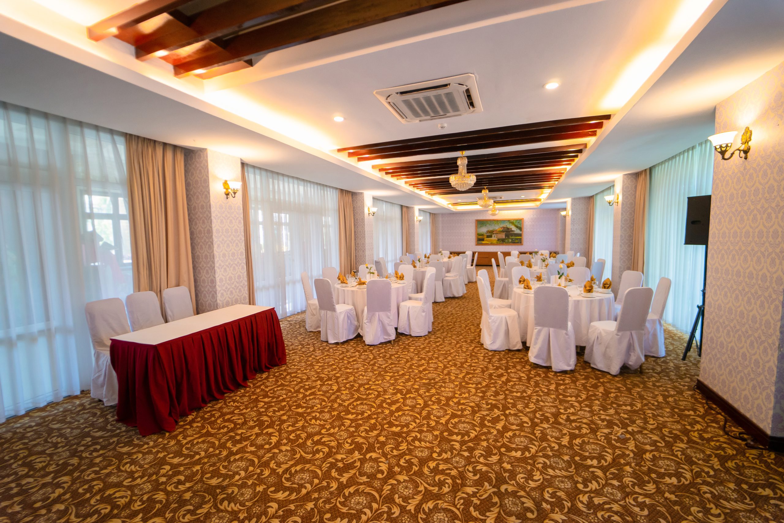 Расположенный на обширной территории отеля Century Riverside Hue, конференц-центр Full House находится на берегу живописной реки Хуонг, предлагая одно из самых красивых мест в Хюэ. В Full House высокие потолки, не загораживающие колонны, сцена, светодиодные экраны и современная звуковая и световая система делают его идеальным местом для свадеб, торжественных ужинов и других масштабных элегантных мероприятий.