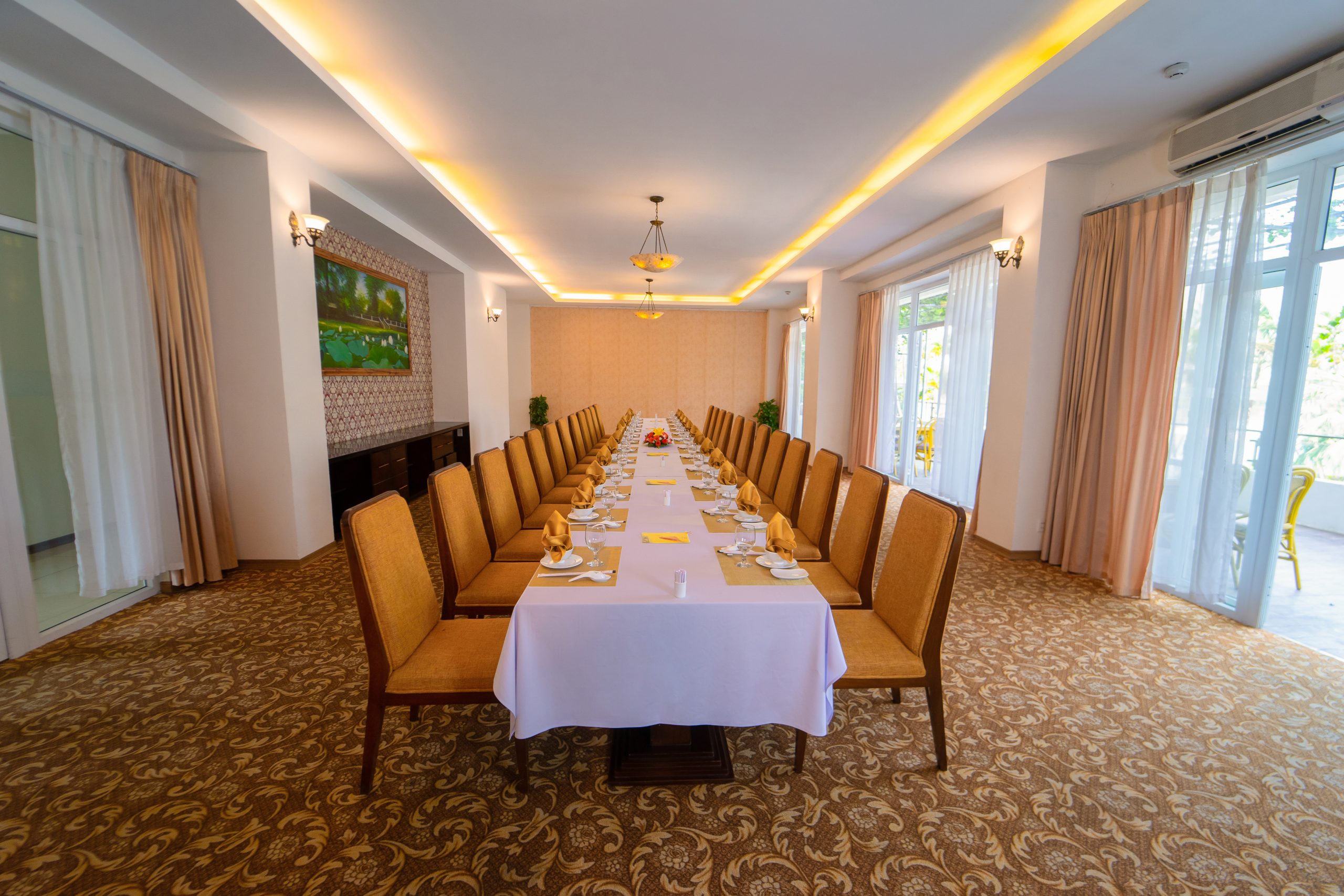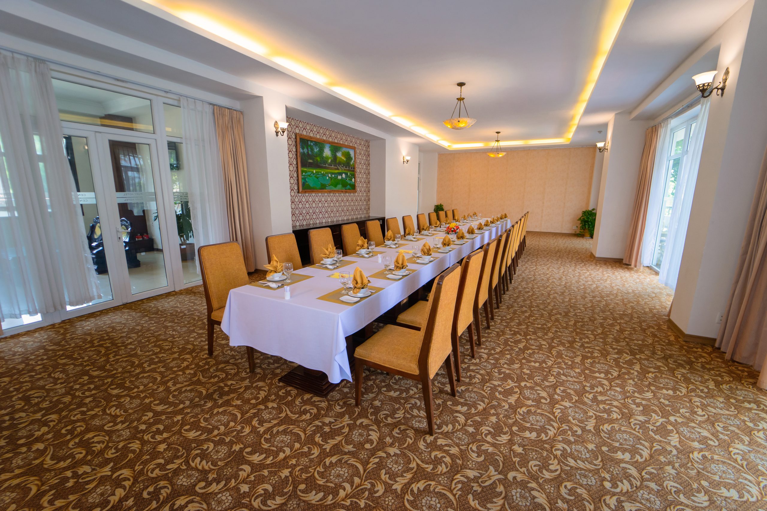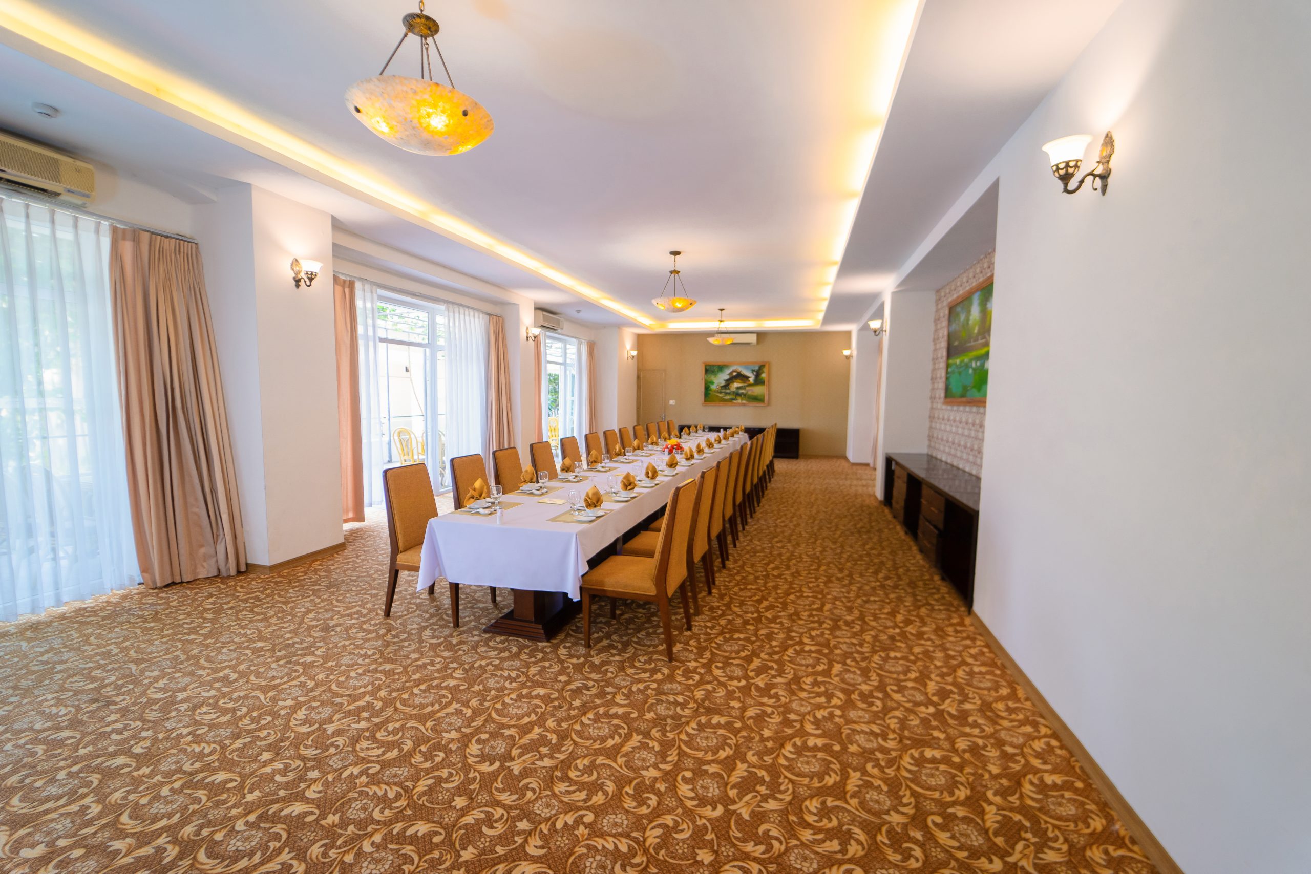 Pagoda — удобно расположен рядом с главным лобби отеля зал, отличный выбор для проведения встреч и мероприятий средних масштабов. Просторное помещение с большими окнами обеспечивает панорамный вид на город и обилие естественного света. Кроме того, зал оборудован сценой, современным аудиовизуальным оборудованием и стандартными LED-экранами, что гарантирует профессиональную обстановку для любого мероприятия.