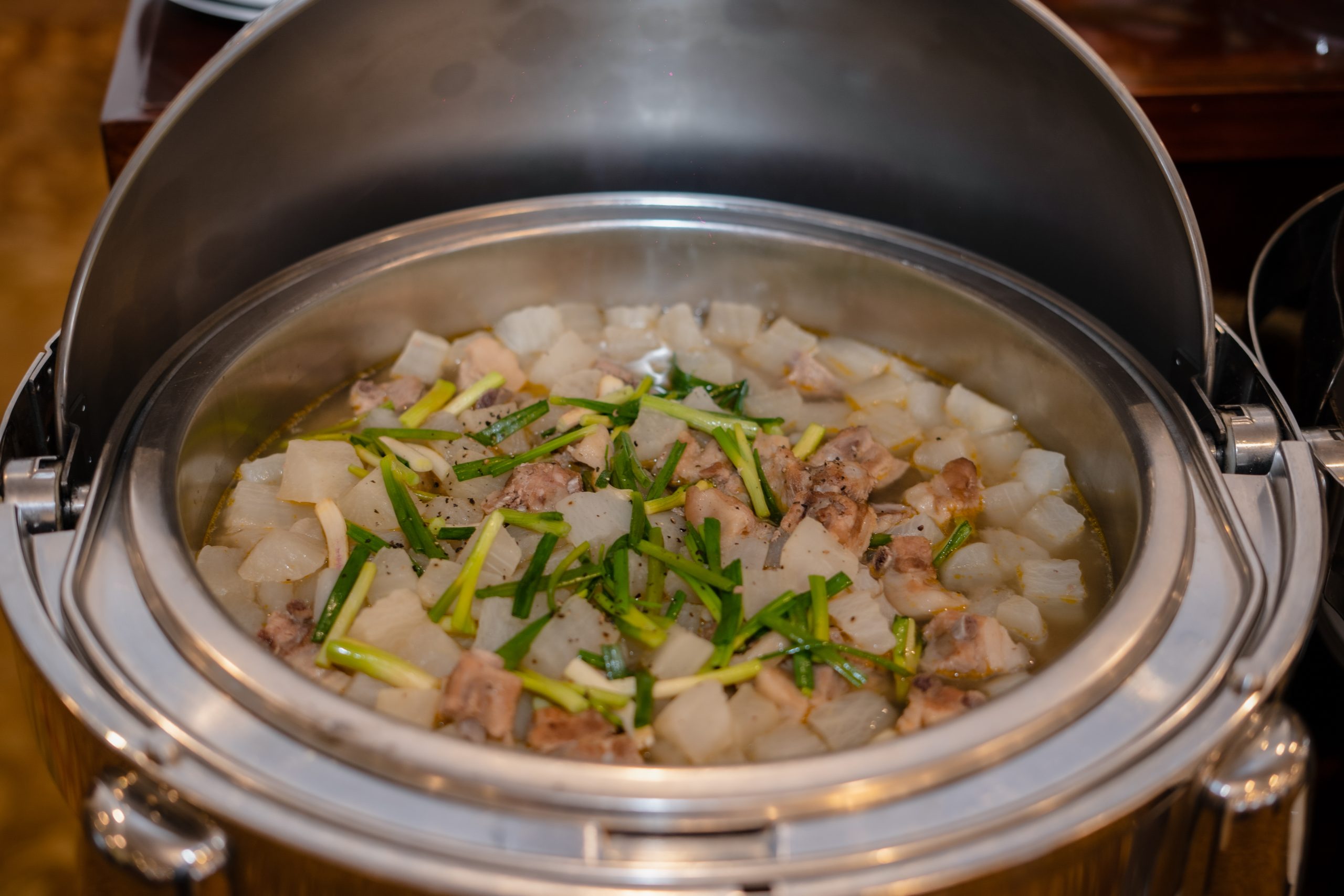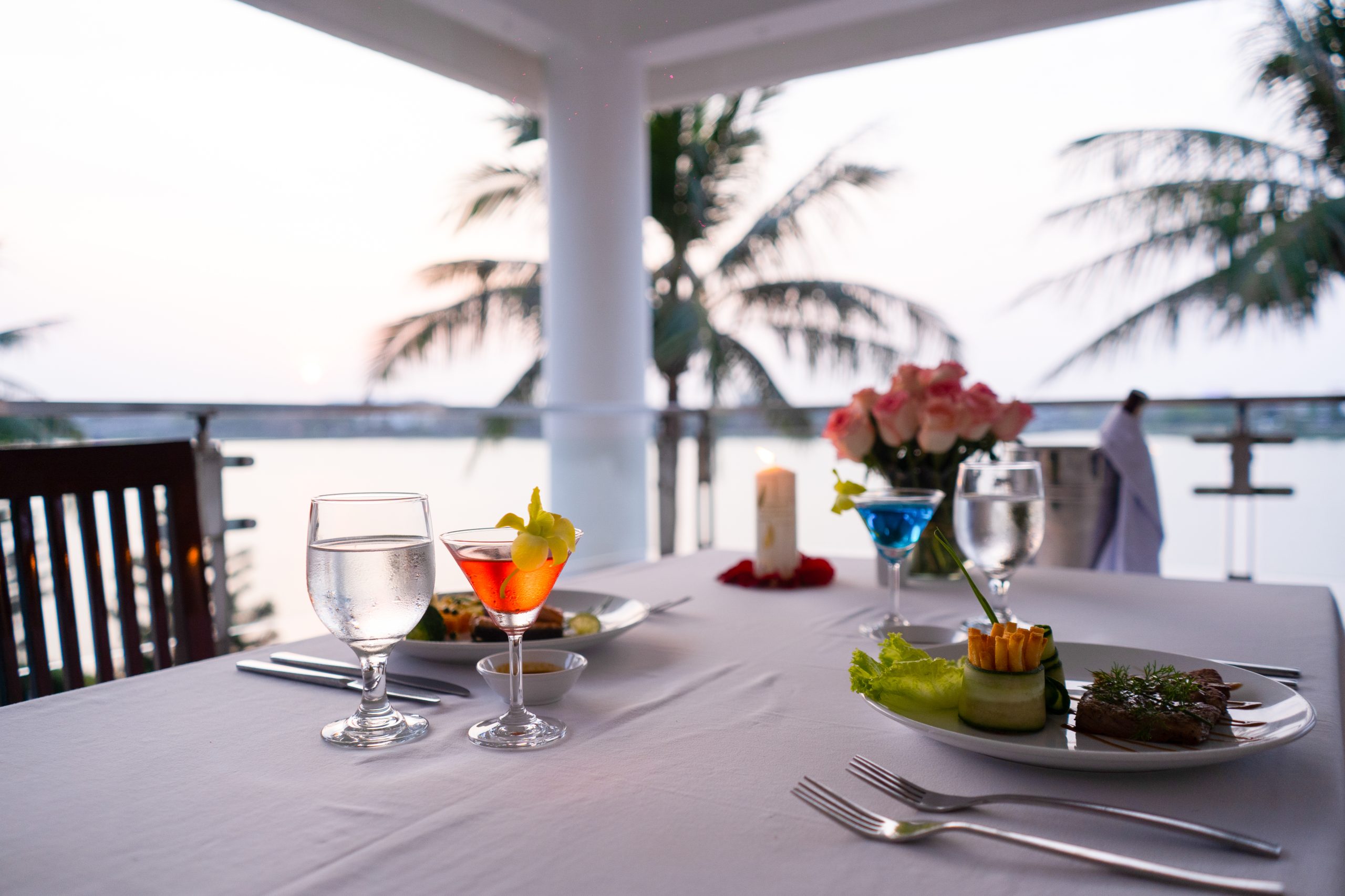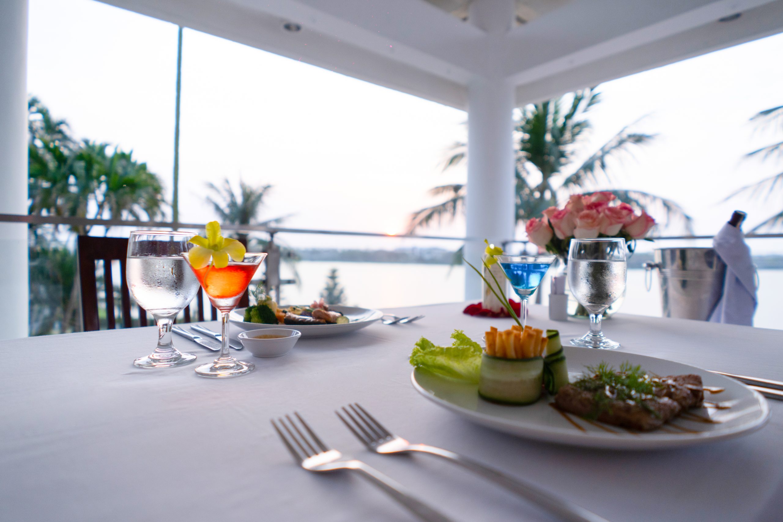 Riverside Restaurant — ресторан на 100-150 мест, окруженный тропическим цветочным садом, в центре которого находится пруд в форме полумесяца с плавно текущим ручьем. Ресторан предлагает обширное меню, в котором представлены блюда европейской и азиатской кухонь.
