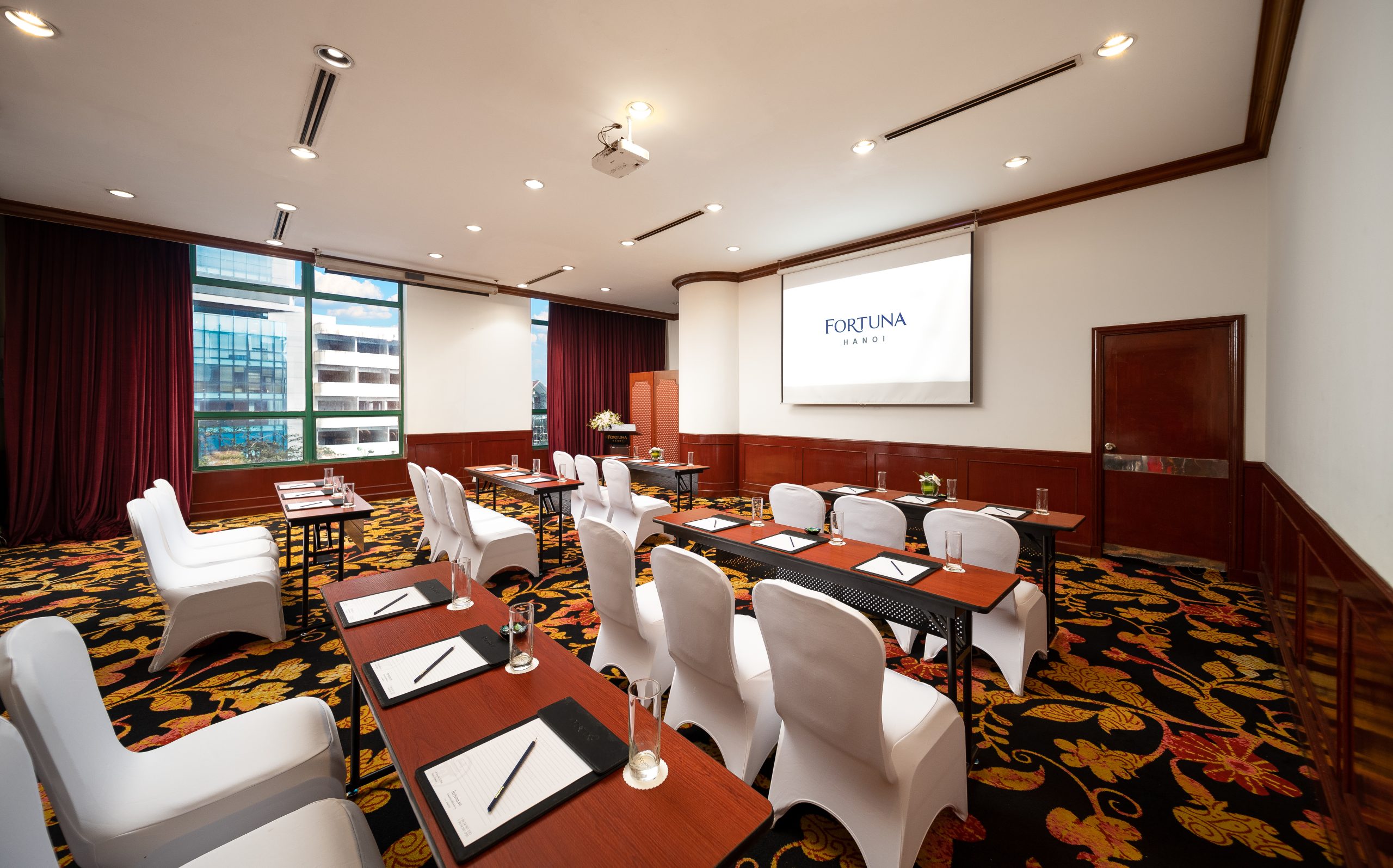 Для проведения мероприятий любого типа Fortuna Hotel Hanoi предоставляет оснащенные новейшими аудиовизуальными технологиями многофункциональные помещения, а преданный своему делу персонал готов помочь вам на каждом этапе, гарантируя успех вашего мероприятия. Будь то небольшая деловая встреча или грандиозное светское мероприятие, ваше мероприятие пройдет точно по плану. В вашем распоряжении 2 бальных зала без колонн и 4 конференц-зала различных размеров, что позволяет проводить самые разнообразные мероприятия.