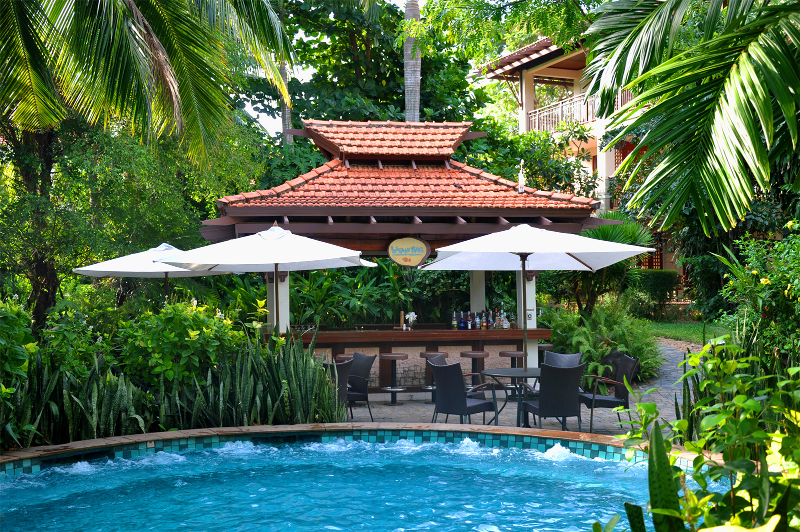 L’Amuse Gourmet Cafe — расположенное в центре прекрасного сада комплекса вилл бар с видом на центральный бассейн — идеальное место с уютной атмосферой, где можно расслабиться за стаканом свежевыжатого сока, освежающим коктейлем или чашечкой настоящего кофе.