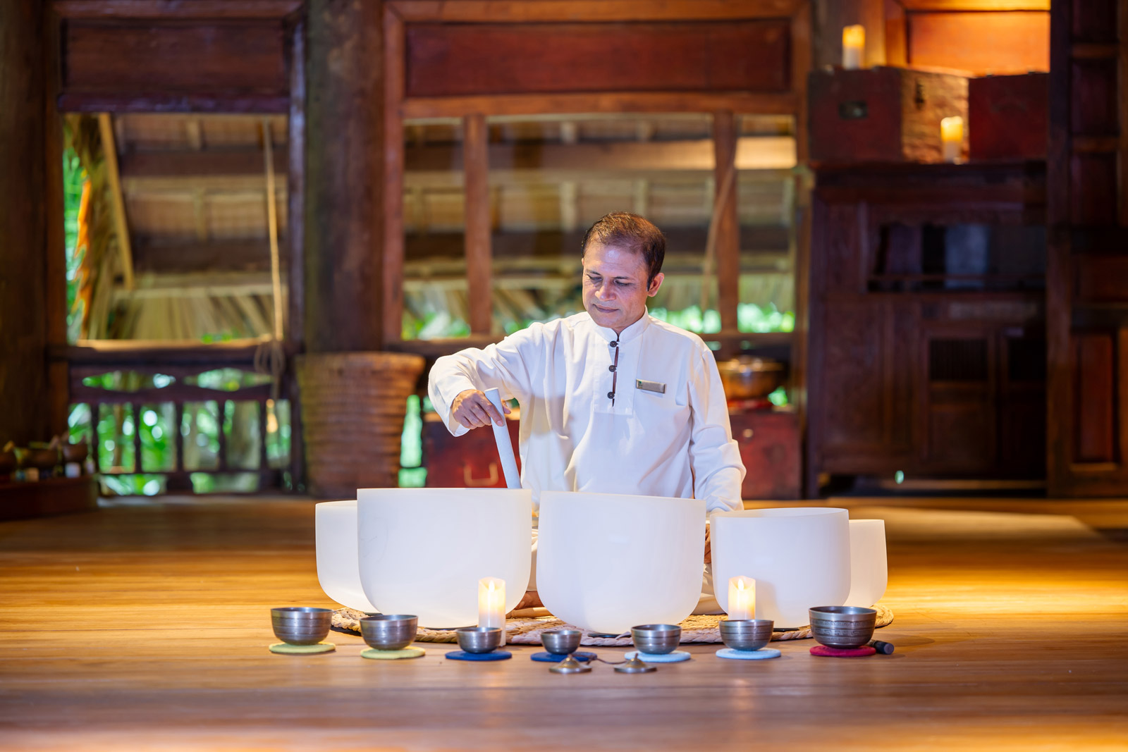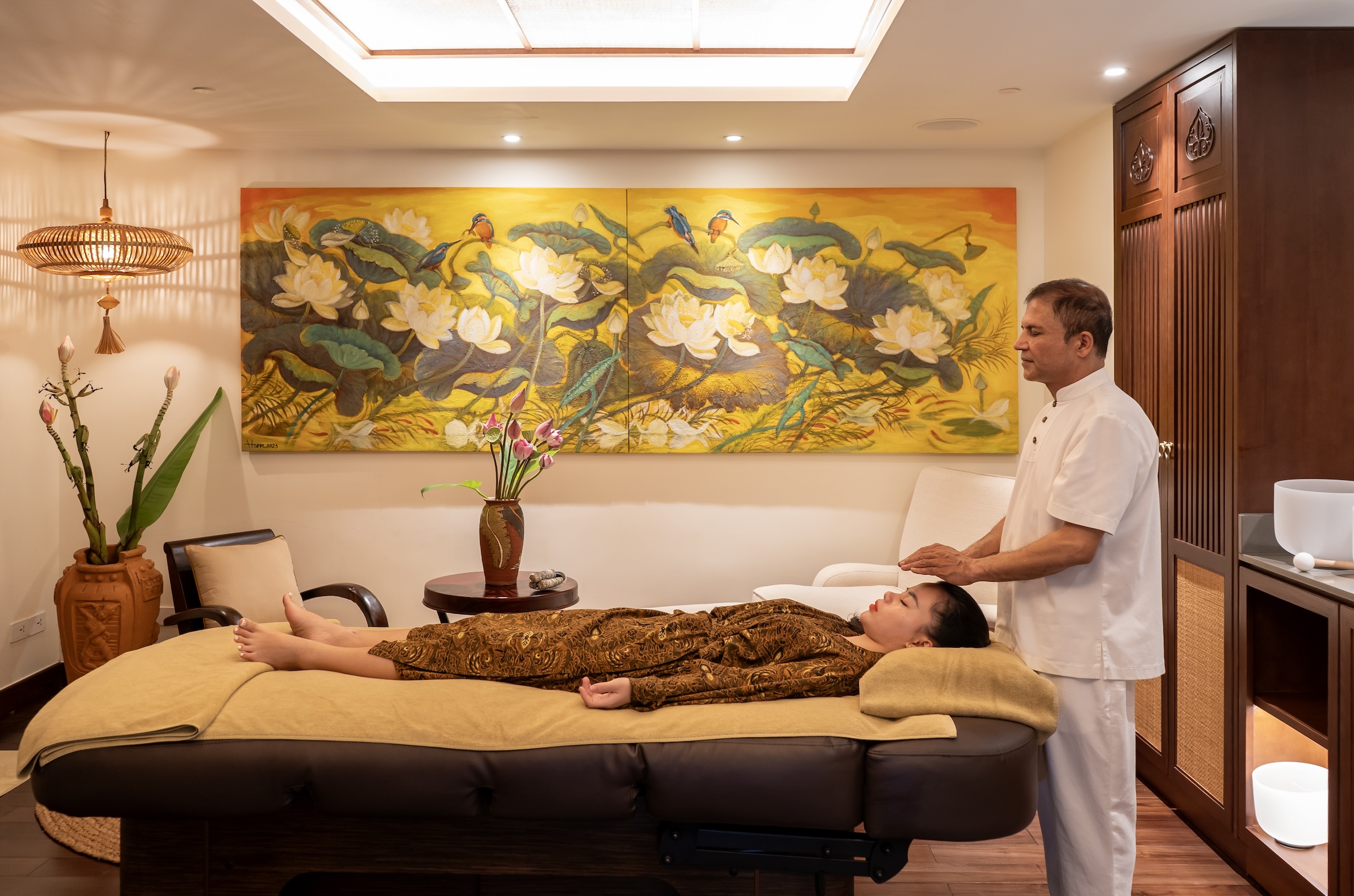 Спрятанный в уединенном уголке курорта, V-Senses Wellness & Spa предлагает гостям спокойное убежище для полного расслабления и восстановления. В уединенном традиционном вьетнамском доме, расположенном над прудом с карпами кои и садом с видом на море, процедурные комнаты не имеют стен, а лишь стеклянные перегородки, размывая границы между внутренним и внешним пространством.