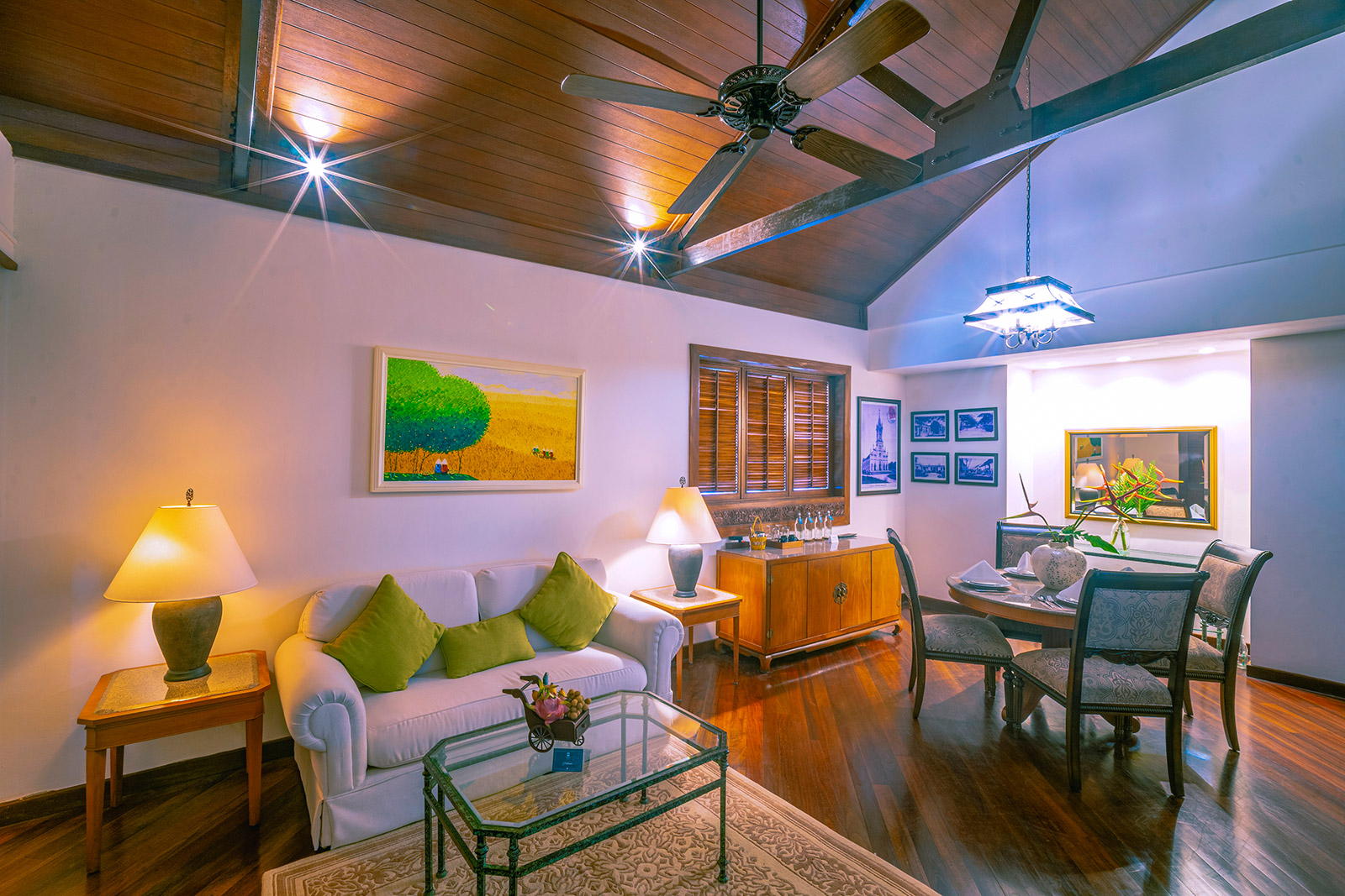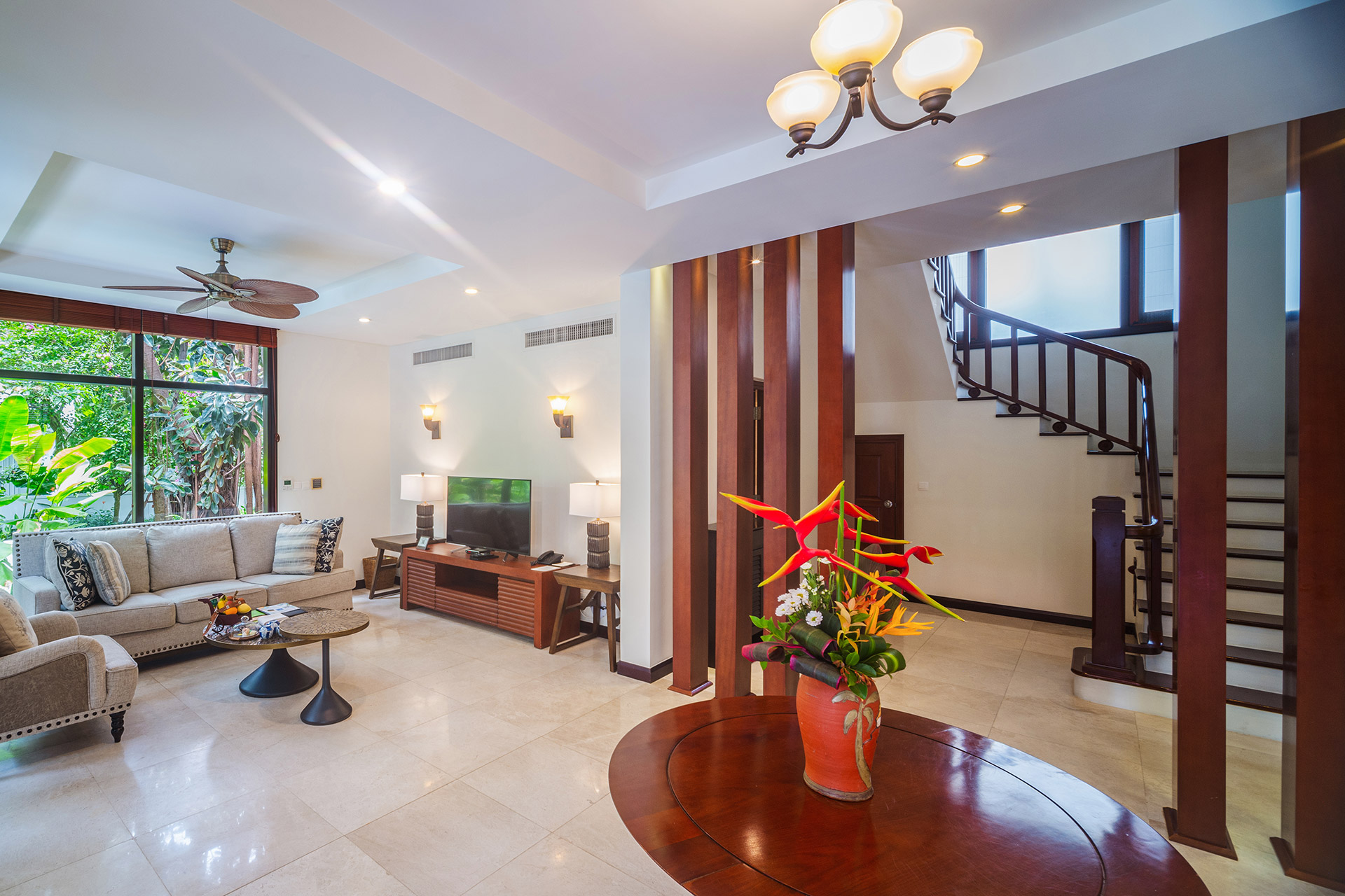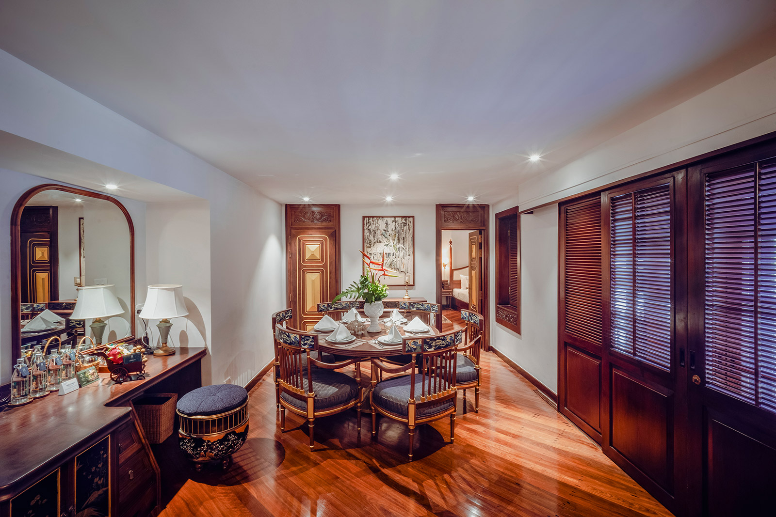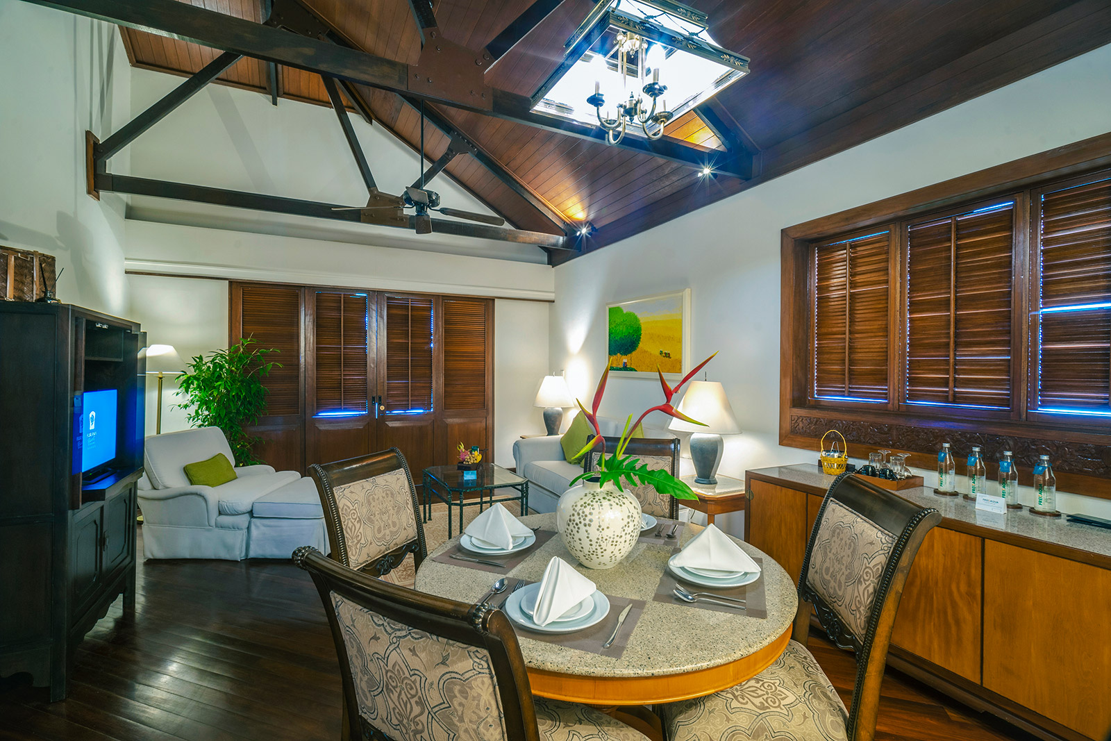 Все номера оснащены полами из полированного дерева, натуральными тканями, удобной мебелью из ротанга и ставнями в колониальном стиле. Каждый номер и вилла имеют собственный балкон или просторную террасу, обеспечивая полную приватность и потрясающий вид на океан, тропические сады или лагунный бассейн с пресной водой. Наслаждайтесь видами на пальмы, растения и цветы самых разнообразных форм и оттенков. Вечером сад и бассейн красиво подсвечиваются, создавая романтичную атмосферу. Изысканное сочетание природных элементов и продуманного дизайна создает безмятежную атмосферу уединения и умиротворения — идеальную для отдыха и восстановления сил.