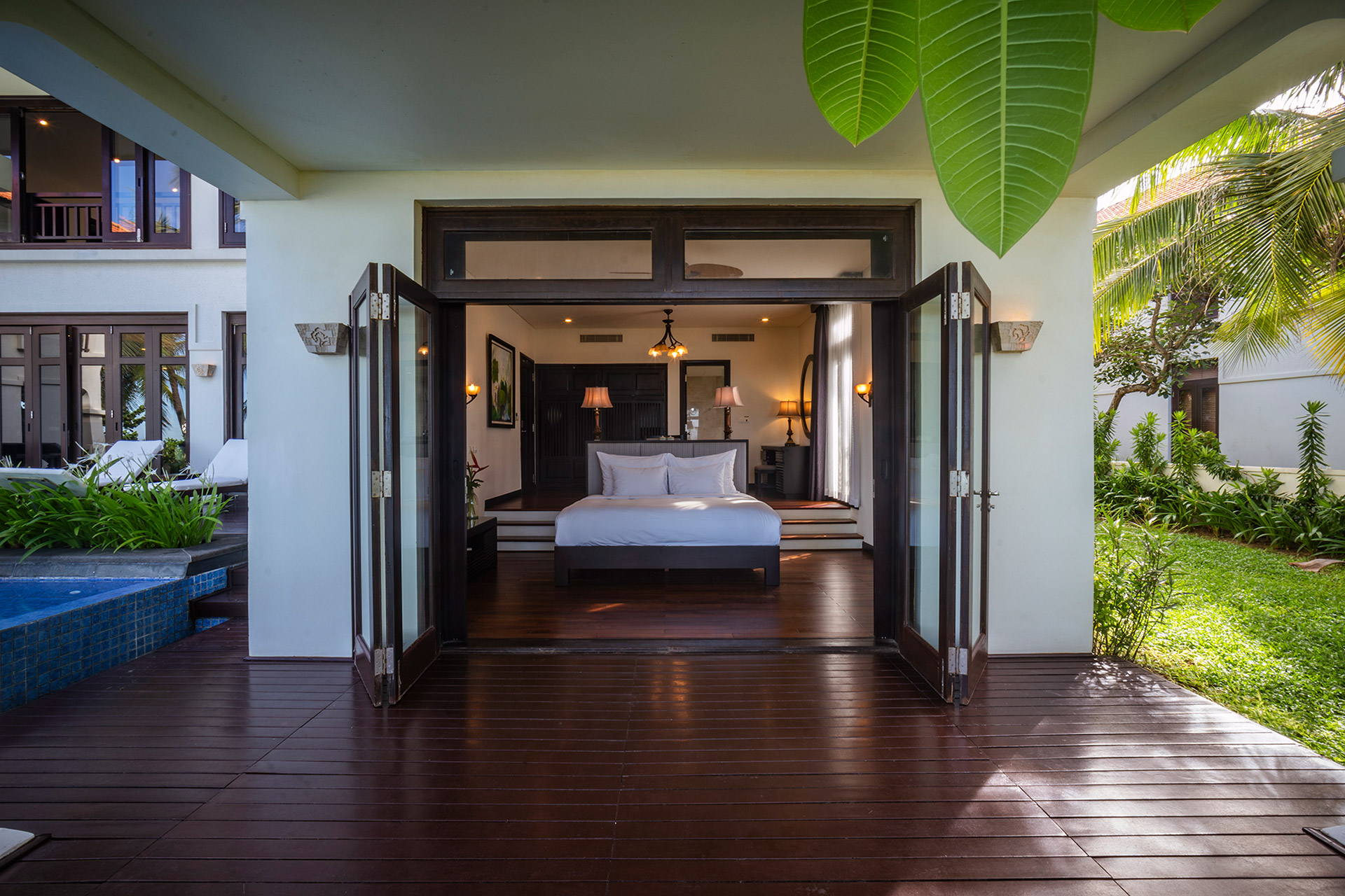 Рассчитана для максимум 16 гостей. - One Bedroom Pool Villa — элегантные и просторные виллы площадью от 315 до 380 кв.м, сочетающие в себе французскую колониальную архитектуру и традиционный вьетнамский дизайн, а также комфорт и природную красоту, даря незабываемые впечатления и безмятежный отдых среди пышных садов.