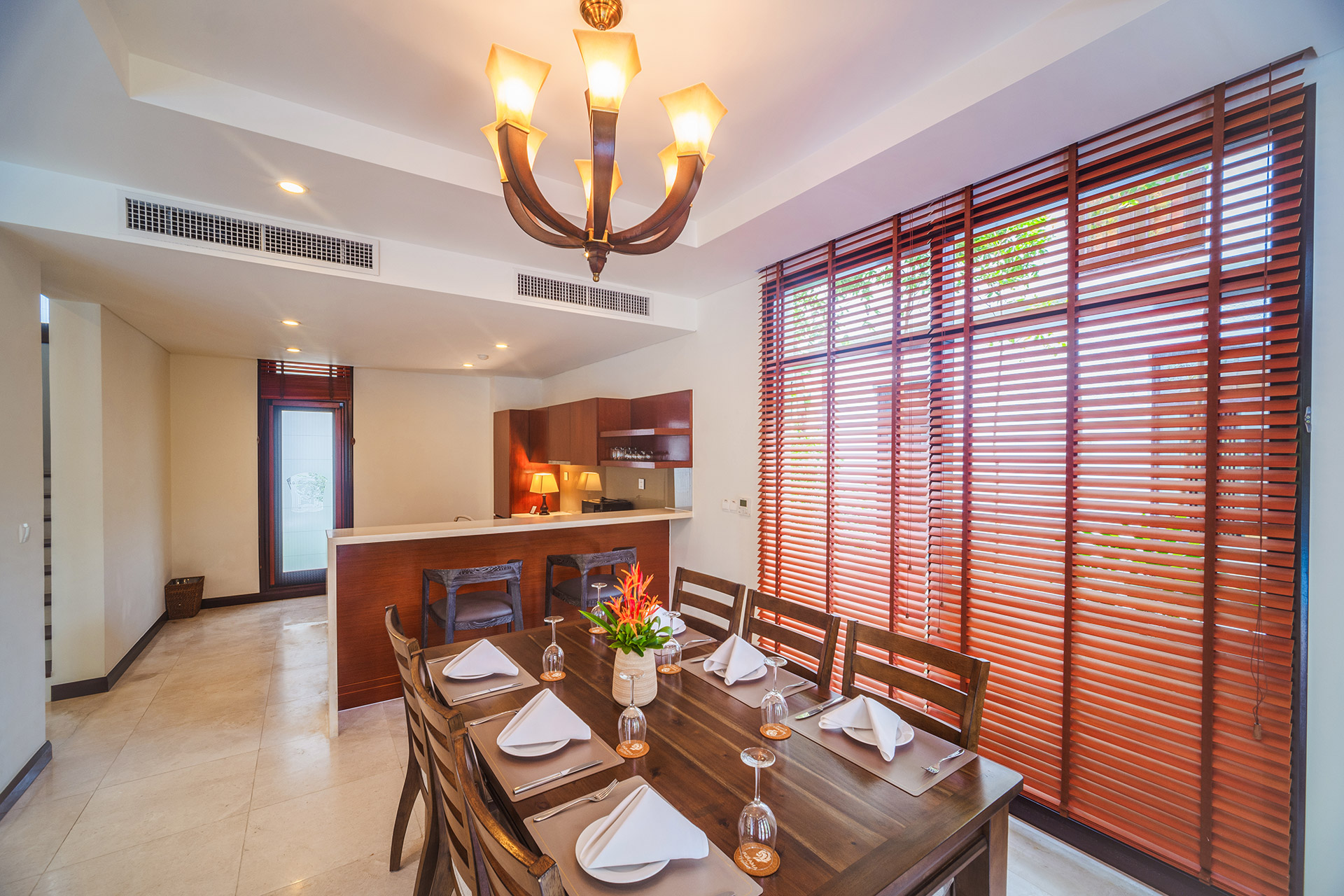 Рассчитан для максимум 8 гостей или 4 взрослых и 4 детей. - Four Bedroom Beachfront Villa — расположенная на берегу моря вилла площадью 850 кв.м, с панорамным видом на океан и прямым выходом на песчаный пляж, интерьеры которого сочетают в себе современный стиль и традиционные элементы, создавая уютную и гостеприимную атмосферу. Вилла включает 4 спальни с двуспальными кроватями King-size, большую гостиную, лаунж для отдыха, рабочую зону с письменным столом, столовую с обеденным столом, полностью оборудованную кухню с микроволновой печью, 4 отделанные мрамором ванные комнаты, частный бассейн и просторную меблированную террасу, которая позволяют гостям расслабиться, наслаждаясь легким морским бризом.