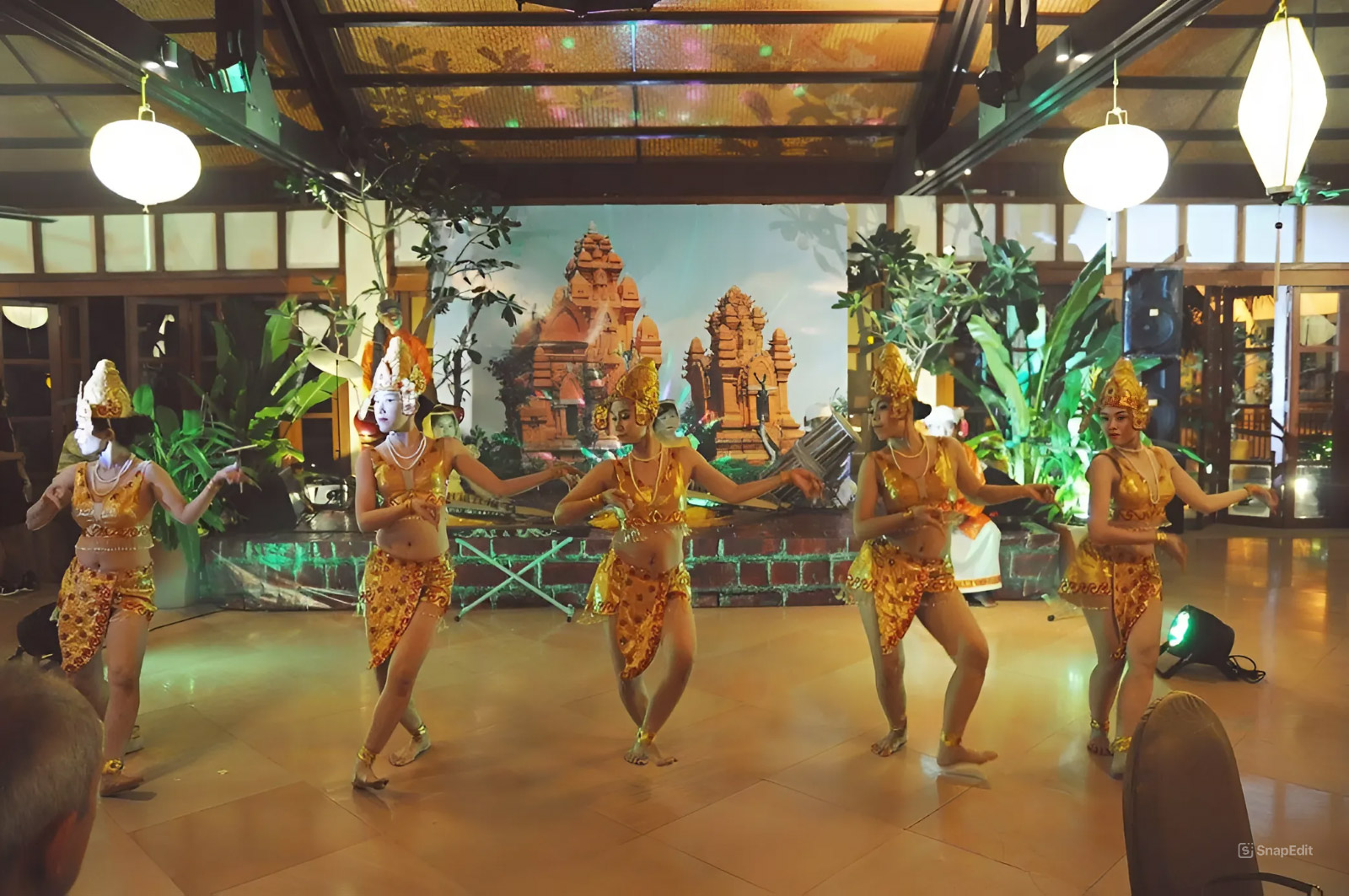 Помимо фьюжн-кухни особенностью здесь являются танцевальные выступления народа Чам.