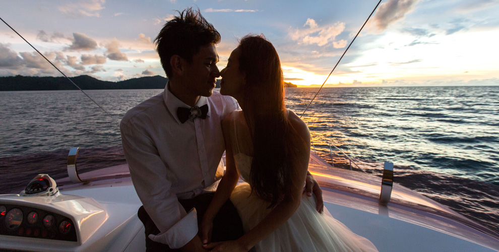 Поднимитесь на борт роскошной моторной яхты и обменяйтесь клятвами на фоне золотистого закатного неба. Отпразднуйте свою свадьбу во время волнующего путешествия, а затем вернитесь на курорт для праздничного ужина из пяти блюд в качестве мужа и жены.