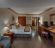 Рассчитаны для максимум 2 гостей. - Executive Suite Sea View — просторные представительские люксы площадью 80 кв.м, с видом на море и бассейн, состоящие из спальни с одной большой двуспальной кроватью King-size, рабочей зоны с письменным столом, отдельной гостиной комнаты с раскладным диваном, гардеробной, большой ванной комнаты с джакузи с душем и отдельной душевой кабиной. В люксах дополнительно есть второй телевизор; в стоимость входит бесплатный ваучер на напиток в баре La Plaza Bar, шоколад или печенье и ежедневные сезонные фрукты в номере.