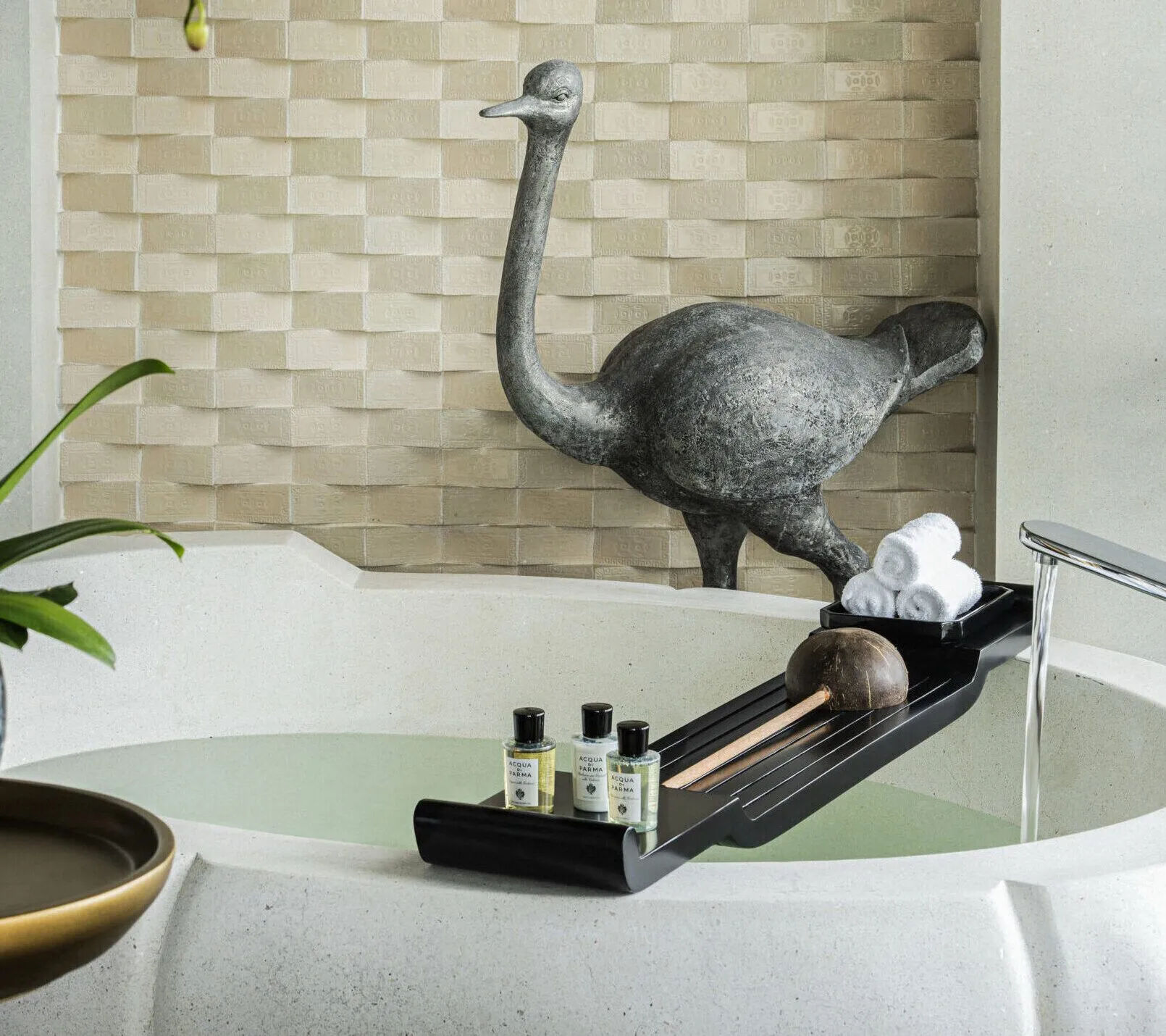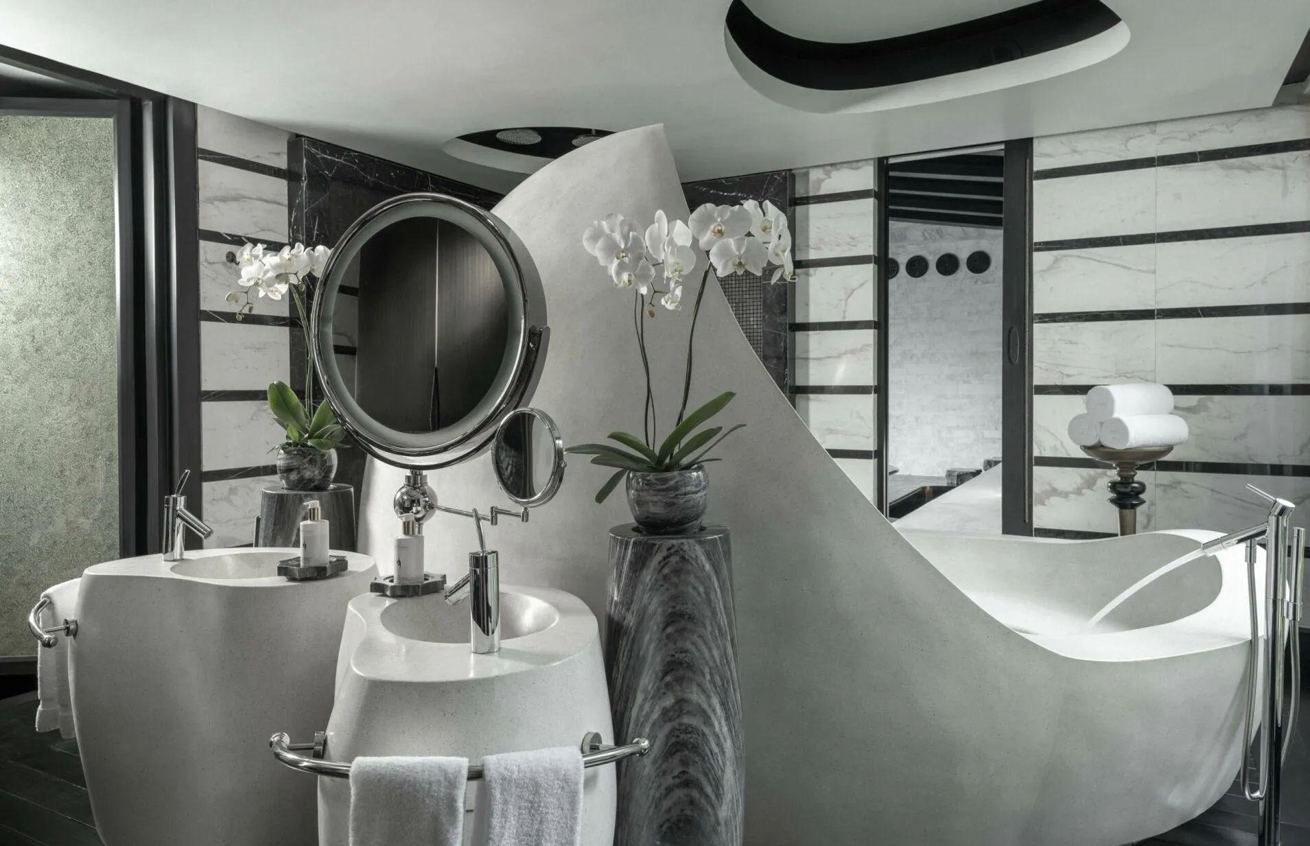 Расслабьтесь в роскоши простора и приватности на самой уединенной вилле в коллекции вилл отеля. Этот безупречный дом в колониальном стиле сочетает в себе строгую черно-белую палитру известного архитектора Билла Бенсли с яркой эстетикой, напоминающей постмодернистское искусство: изысканный дизайн и юмор.