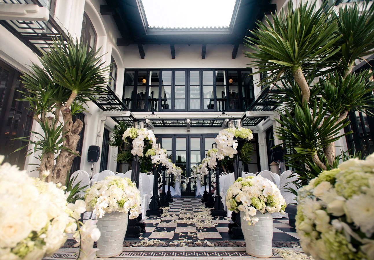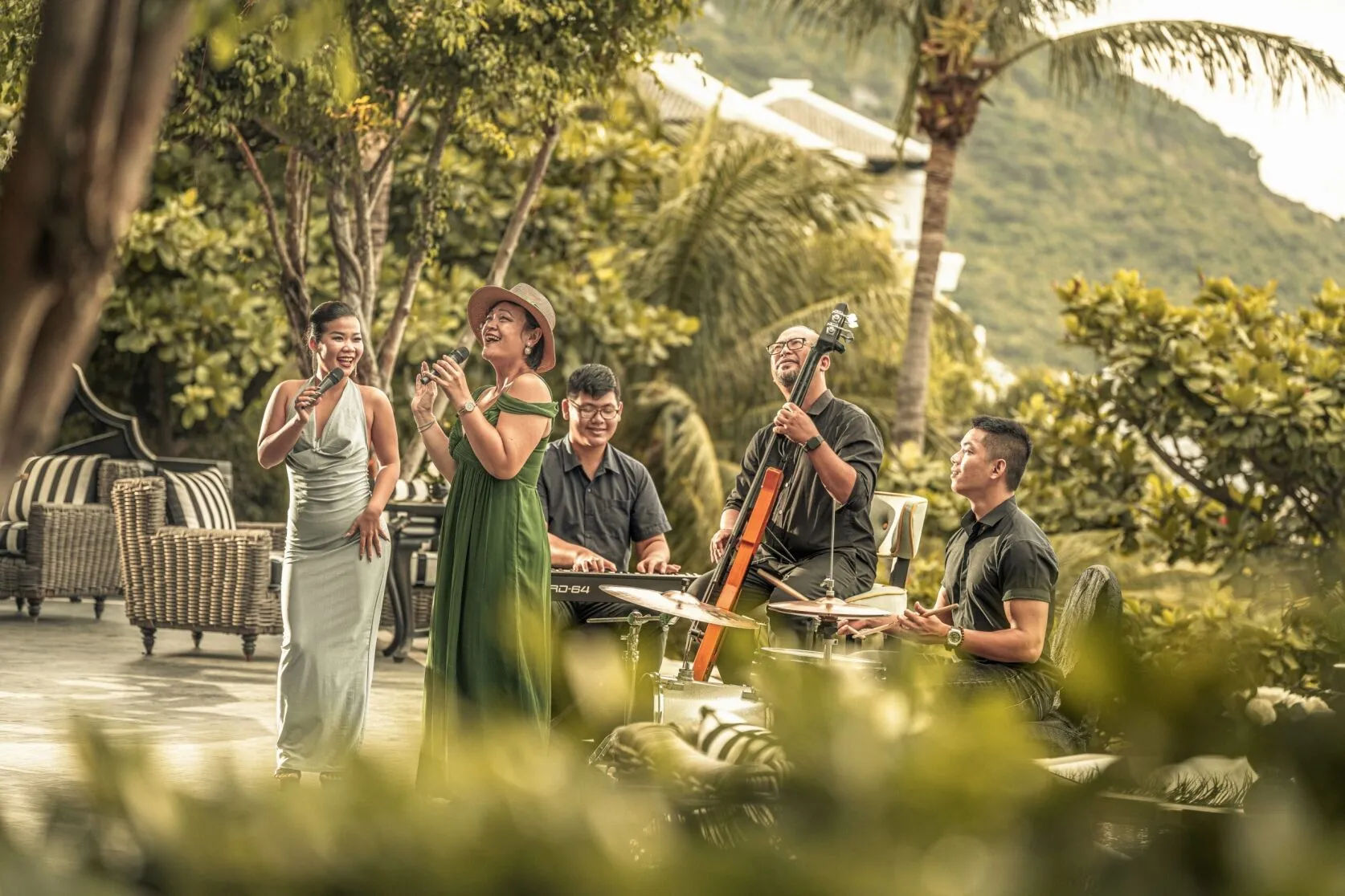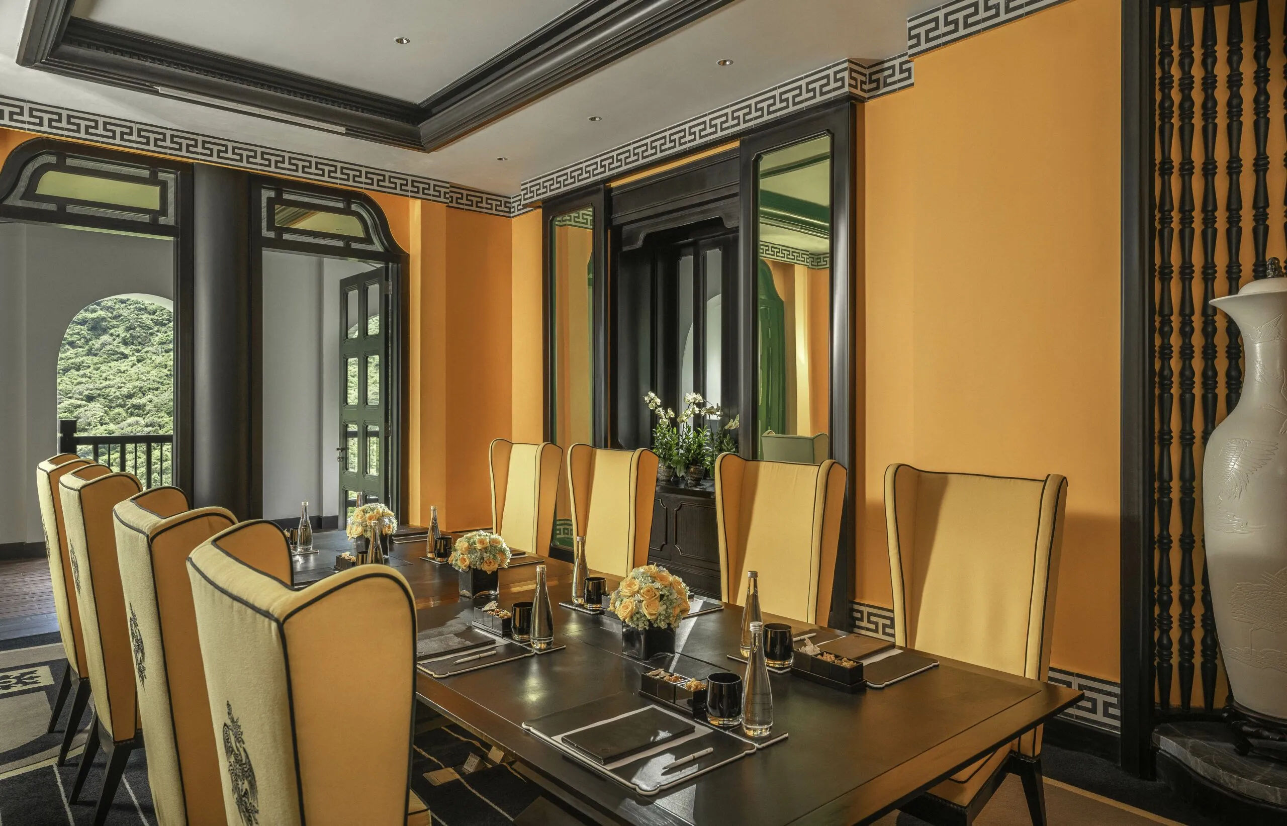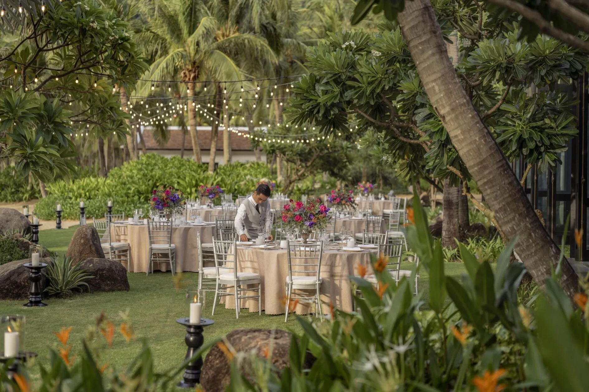 Проведите свою свадьбу в зале для приемов, напоминающем собор, в дизайнерском бальном зале или в одном из небольших помещений для мероприятий, включая две великолепные террасы с видом на горы и лагуну. Интерьеры сочетают в себе традиционный дворцовый стиль с колониальными мотивами, унаследованными от прошлого Вьетнама в Индокитае.