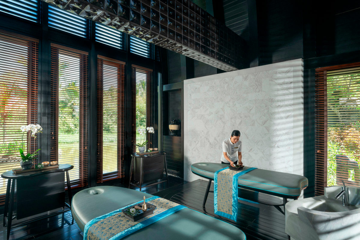 - Two-Bedroom Royal Residence by the Sea — расположенная в тихом уголке частного пляжа отеля уникальная, великолепная и чрезвычайно приватная двухэтажная вилла площадью 450 кв.м, с панорамным видом на море, состоящая из двух спален, каждая с кроватью King-size и одна, на нижнем этаже, с дополнительной встроенной детской кроватью; шикарной гостиной комнаты с кабинетным роялем и отдельной барной зоной; полностью оборудованной кухни, идеально подходящей для блюд, приготовленных личным шеф-поваром; обеденного павильона на сваях над водой; медиа-зала с караоке; двух ванных комнат при спальнях с гардеробными, мраморными ваннами, душевыми кабинами с тропическим душем и туалетами; частных меблированных открытых террас; частного панорамного 13-метрового бассейна.