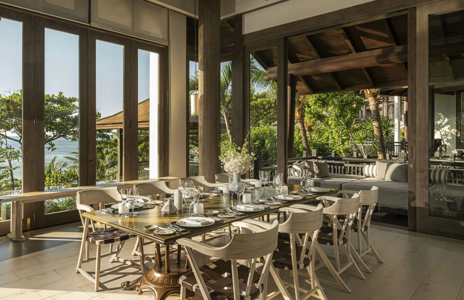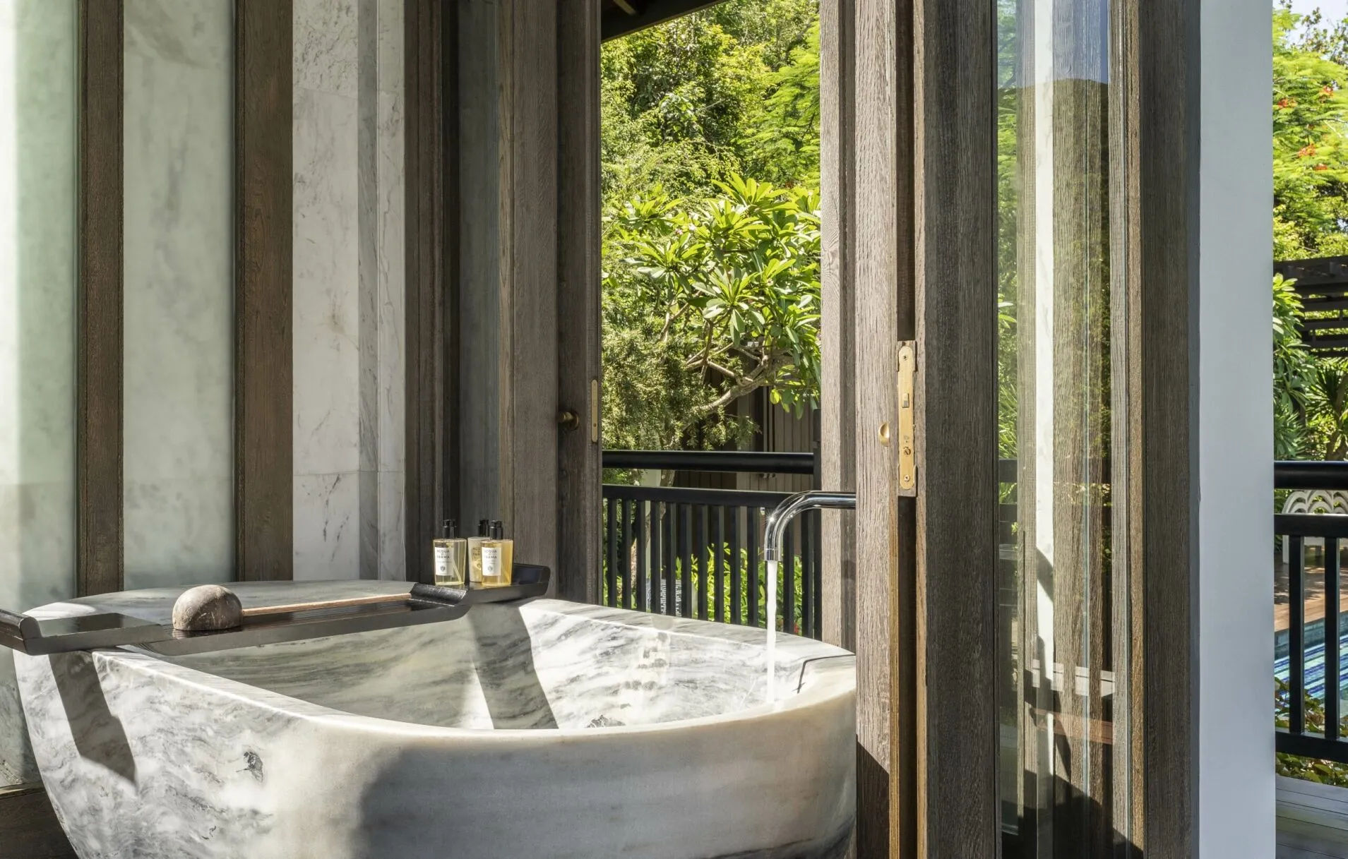 - One-Bedroom Seaside Villa by the Beach — стильная вилла площадью 145 кв.м, с прекрасным видом на море и пляж, состоящая из спальни с кровать King-size под балдахином под сводчатым потолком и удобной нишей для отдыха с телевизором и очень большой кушеткой, рабочей зоны с письменным столом, отдельной гостиной, гардеробной, отделанной мрамором стильной ванной комнаты с изготовленной на заказ большой каменной ванной в отдельном купальном уголке, отдельной душевой кабиной с тропическим душем и двумя раковинами, большой частной меблированной террасы с гостиной зоной на открытом воздухе, с садом, частным пейзажным бассейном и тропическим душем на открытом воздухе.