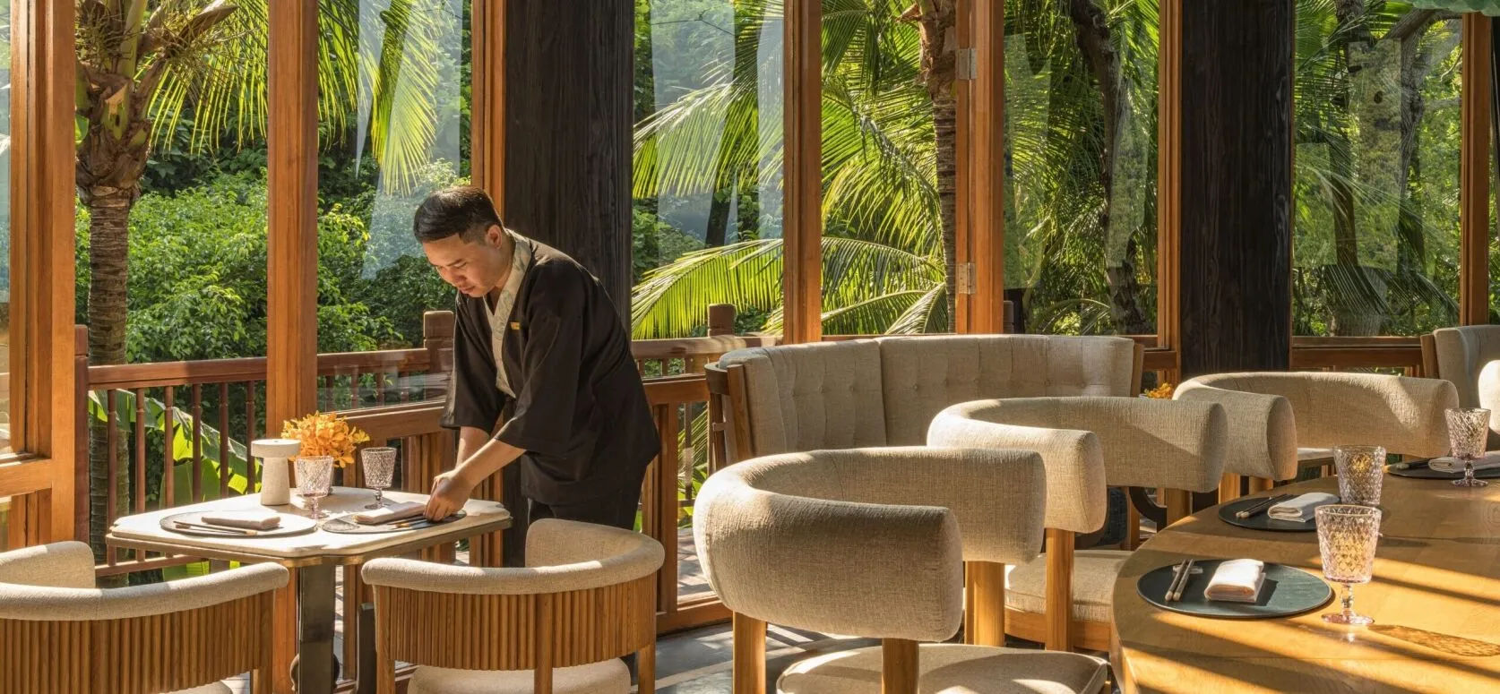 - Club Terrace Suite Panoramic Oceanview — расположенный на верхнем этаже наполненный светом, воздухом и особой тишиной угловой люкс площадью 80 кв.м, с панорамным видом на пляж и море, состоящий из спальни с кровать King-size, уютно обставленной гостиной, рабочей зоны с письменным столом, отделанной мрамором роскошной ванной комнаты с ванной, отдельной душевой кабиной с тропическим душем и двумя раковинами, большой частной меблированной открытой террасы с пространством для отдыха и обедов и панорамным видом на океан и джунгли. Обеденный стол с мраморной столешницей идеально подходит для коктейлей или обедов на свежем воздухе.