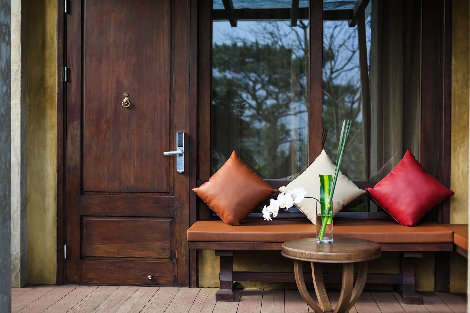 - Deluxe Room — оформленные в рустикальном стиле уютные номера площадью 45 кв.м, с видом на частный благоустроенный сад, состоящие из спальни с одной очень большой кроватью King-size, рабочей зоны с письменным столом, хорошо оборудованной ванной комнаты с ванной и душевой кабиной с тропическим душем, частного меблированного балкона.