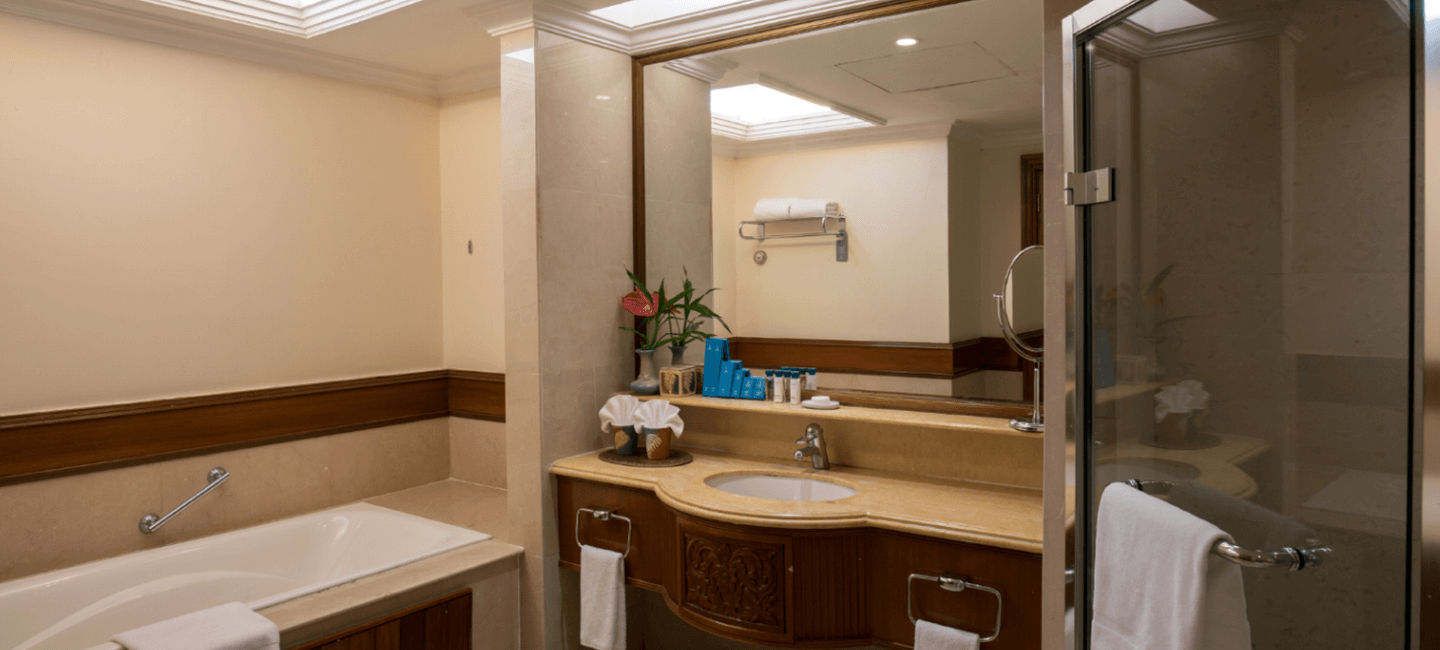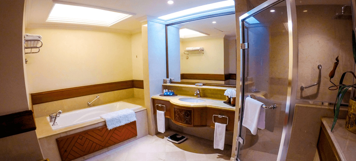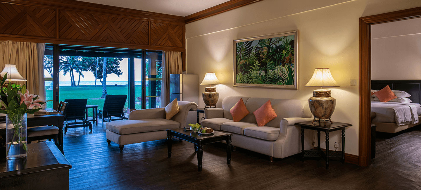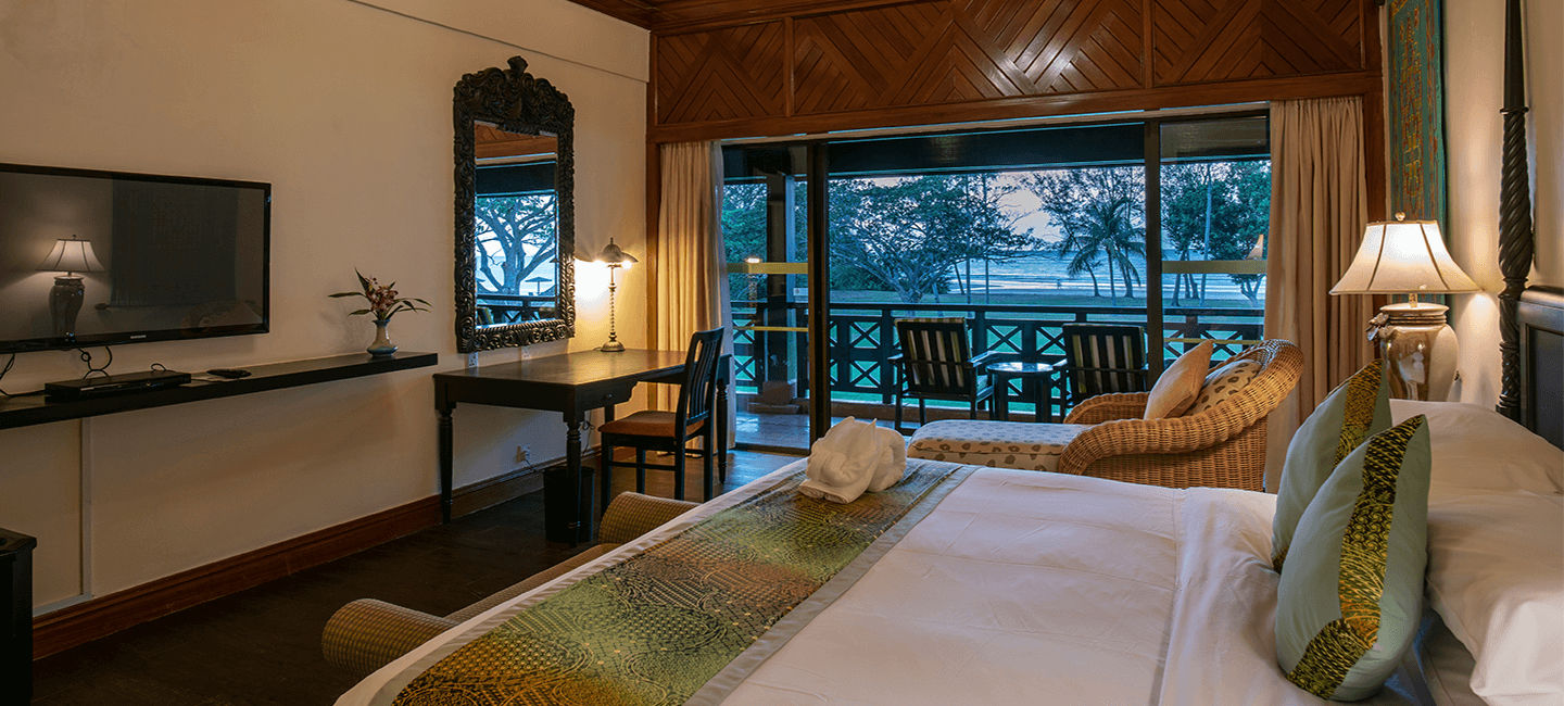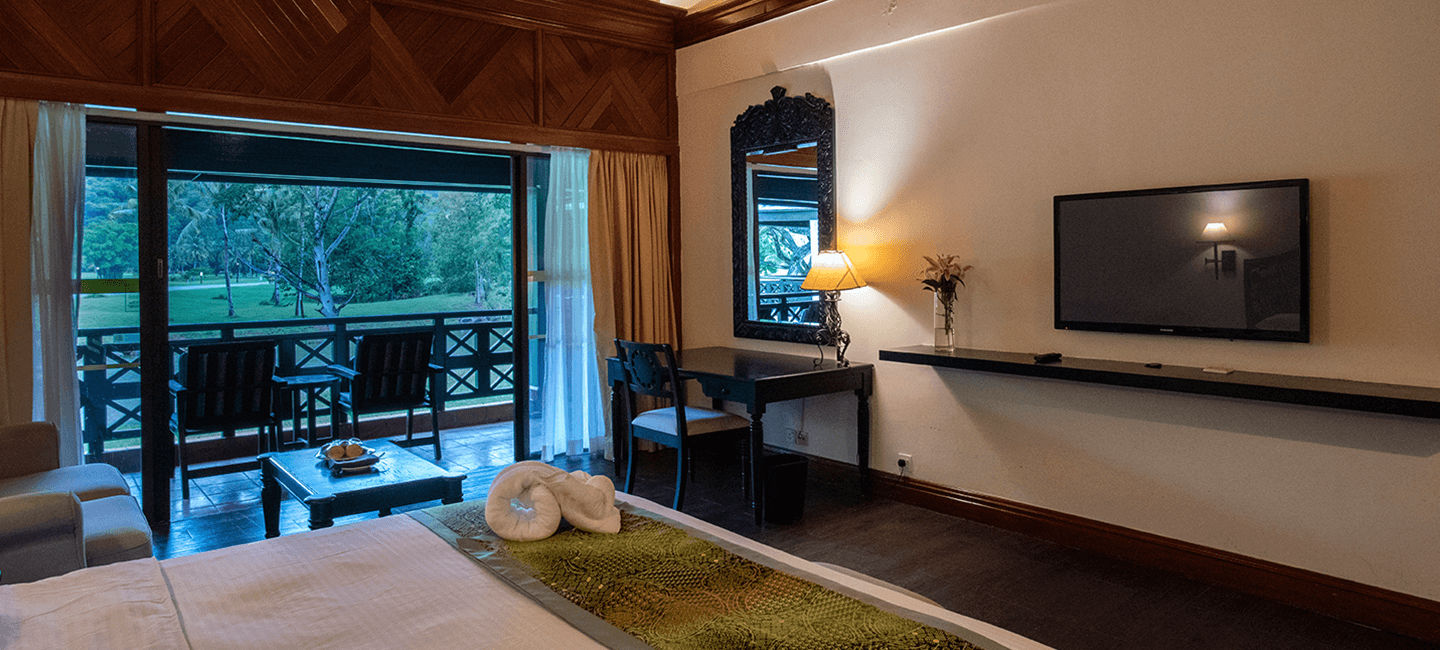 Люксы выдержаны в нежных естественных тонах, что еще больше подчеркивает роскошную атмосферу курорта. В них воплощены роскошная элегантность и комфорт, отражающие богатый этнический колорит Сабаха.