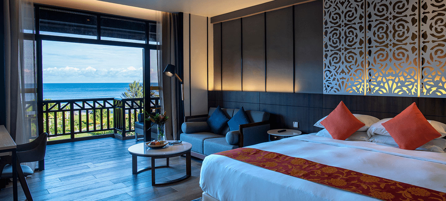Все номера на каждом этаже имеют открытый коридор. Каждый номер прекрасно оформлен, выдержан в сдержанных современных природных тонах, что еще больше подчеркивает роскошную атмосферу курорта. В номерах Ocean Panorama также есть собственная веранда. - Ocean Panorama Premier Room — расположенные с 1 по 2 этажи здания с лифтом номера площадью 42.5 кв.м, выходящие на бескрайнее Южно-Китайское море, состоящие из спальни, небольшой гостиной зоны, рабочей зоны с письменным столом, ванной комнаты с ванной и отдельной душевой кабиной, частного меблированного балкона или террасы.