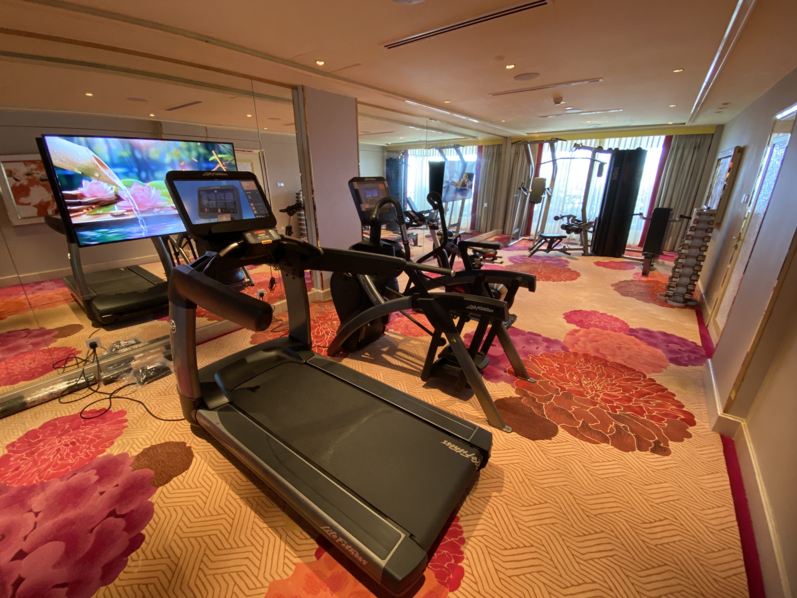 Поддерживать себя в форме гости могут в оборудованном тренажерном зале.