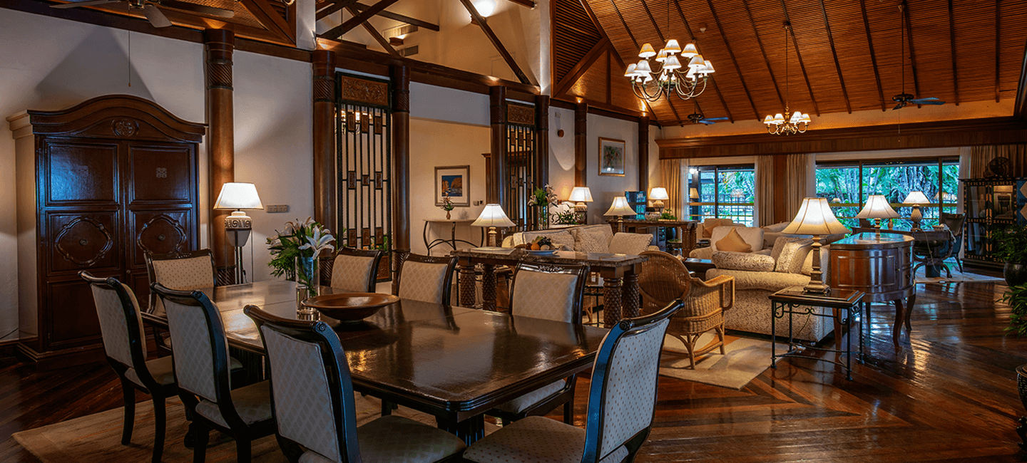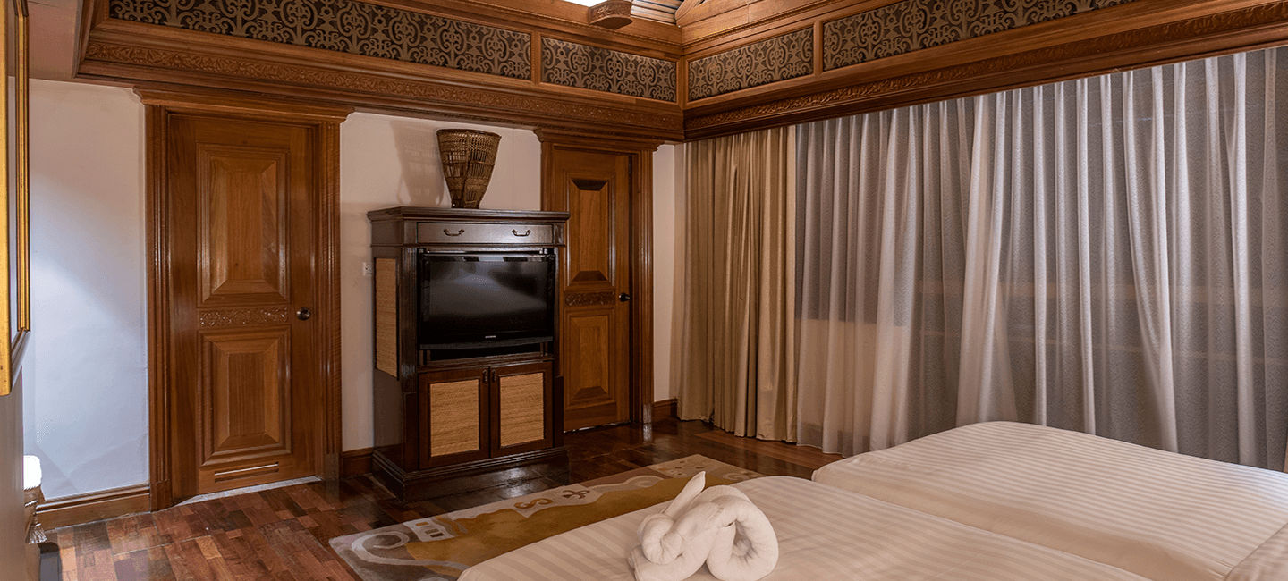 Каждый номер изысканно оформлен в спокойных естественных тонах; атмосфера изысканности подчеркивается использованием местных резных пород дерева, таких как ньято и борнейский ротанг. - Borneo Executive Suite — представительские люксы площадью 85 кв.м, с панорамным видом на океан, состоящие из спальни, отдельной светлой и просторной гостиной комнаты, рабочей зоны с письменным столом, ванной комнаты с ванной и отдельной душевой кабиной, частного меблированного балкона или террасы.