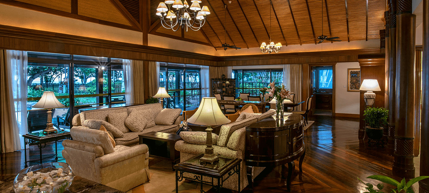 — Услуги личного дворецкого. - Royal Villas — эксклюзивные королевские виллы площадью 315 кв.м, с панорамным видом на Южно-Китайское море, каждая из которых располагает тремя роскошными спальнями с собственными ванными комнатами с ваннами и отдельными душевыми кабинами, отдельной просторной гостиной комнатой, столовой зоной с обеденным столом, мини-кухней, частным бассейном, джакузи, частным ландшафтным садом — идеальное место для коктейлей и вечеринок.