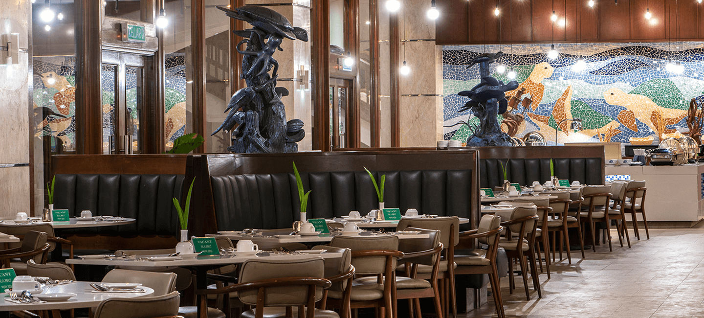 Этот ресторан открыт с обеда до ужина и предлагает широкий выбор блюд интерконтинентальной кухни.