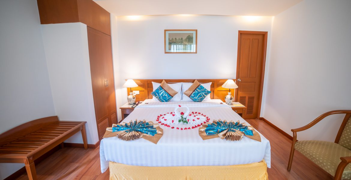 Рассчитаны для максимум 2 гостей. - Deluxe Room — 13 отличающихся изысканной архитектурой номеров площадью 28 кв.м, с видом на сад, состоящих из спальни с одной двуспальной кроватью (1.6 х 1.8 м) или двумя односпальными кроватями Twin (1 х 1.8 м), небольшой гостиной/рабочей зоны, ванной комнаты с ванной с душем.