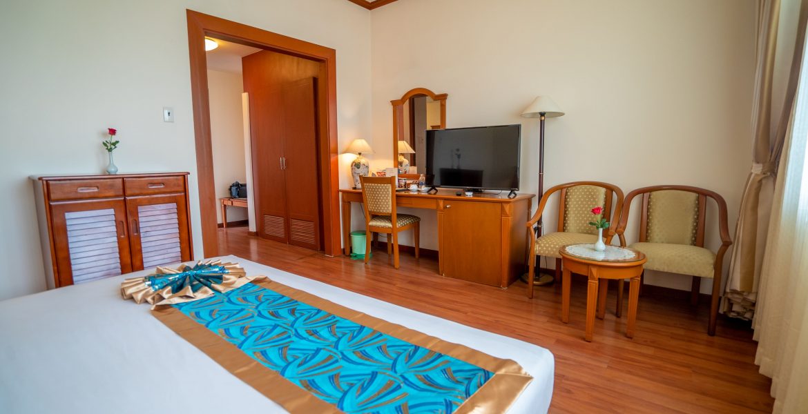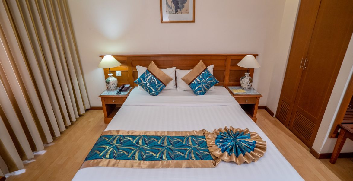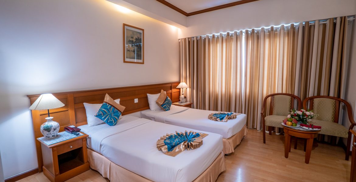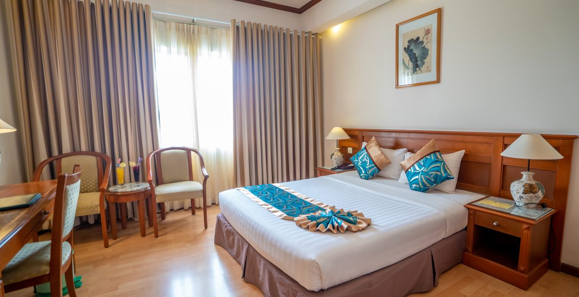 Рассчитаны для максимум 2 гостей. По запросу доступна детская кроватка для детей до 1 года. - Premium Deluxe Room — 15 расположенных на верхнем этаже отеля номеров площадью 30 кв.м, с видом на Здание Народного комитета Хошимина, состоящих из спальни с одной двуспальной кроватью (1.6 х 1.8 м) или двумя односпальными кроватями Twin (1 х 1.8 м), гостиной/рабочей зоны, ванной комнаты с ванной с душем.