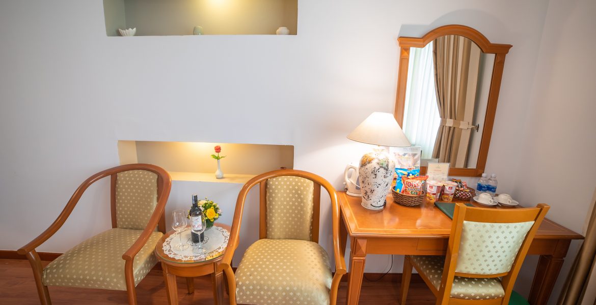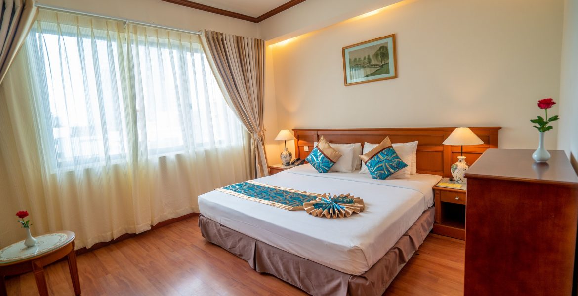 Рассчитаны для максимум 2 гостей. По запросу доступна детская кроватка для детей до 1 года. - Oscar Deluxe Room — 27 номеров площадью 28 кв.м, с видом на проспект Нгуен Хюэ, где обычно проходят захватывающие представления и важные события Хошимина, состоящих из спальни с одной двуспальной кроватью (1.6 х 1.8 м) или двумя односпальными кроватями Twin (1 х 1.8 м), гостиной/рабочей зоны, ванной комнаты с ванной с душем.