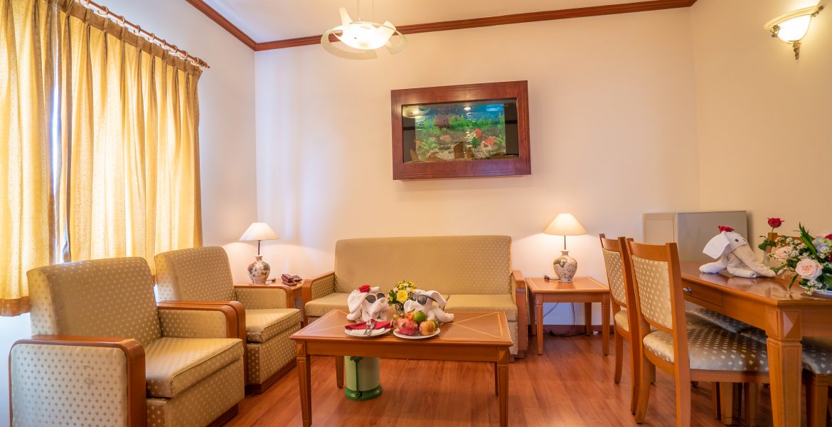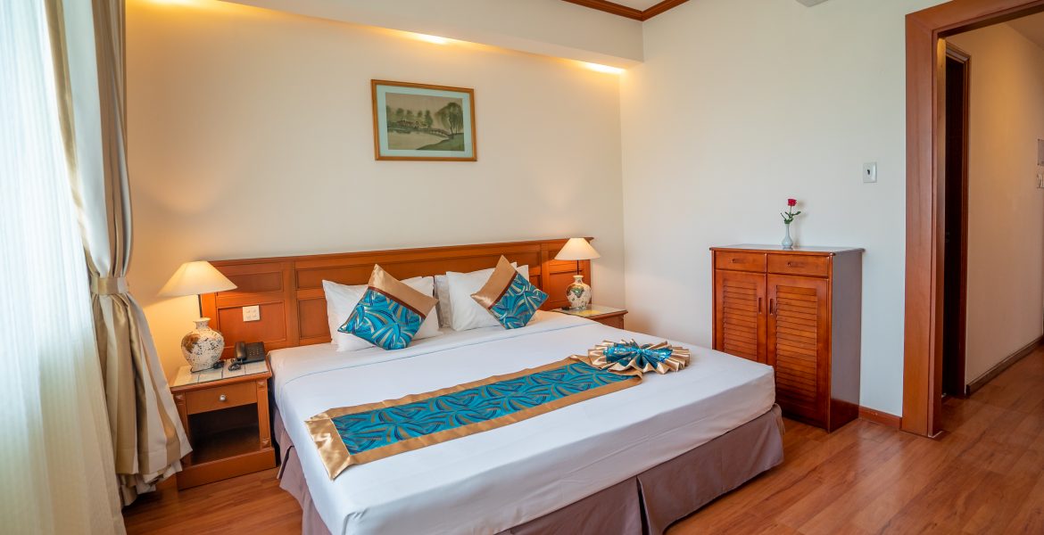 Рассчитаны для максимум 2 гостей. По запросу доступна детская кроватка для детей до 1 года. - Oscar Executive Suite — 2 расположенных на верхнем этаже отеля исполнительных люкса площадью 60 кв.м, с видом на проспект Нгуен Хюэ и Здание Народного комитета Хошимина, состоящих из спальни с одной двуспальной кроватью King size (2 х 2 м), отдельной просторной гостиной комнаты, ванной комнаты с ванной с душем.