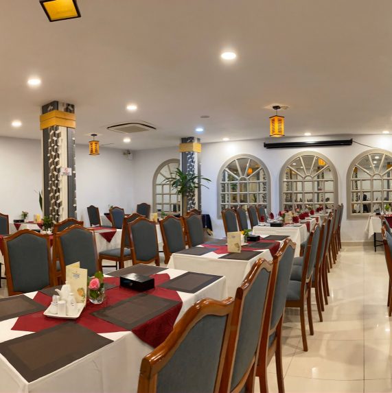Меню à la carte разнообразное и обширное, позволяющее гостям выбирать блюда по своему вкусу. Обед в формате ‘шведский стол’ доступен с субботы по воскресенье и включает 35 блюд вьетнамской кухни, таких как барбекю, морепродукты, пирожные, свежие фрукты и напитки.
