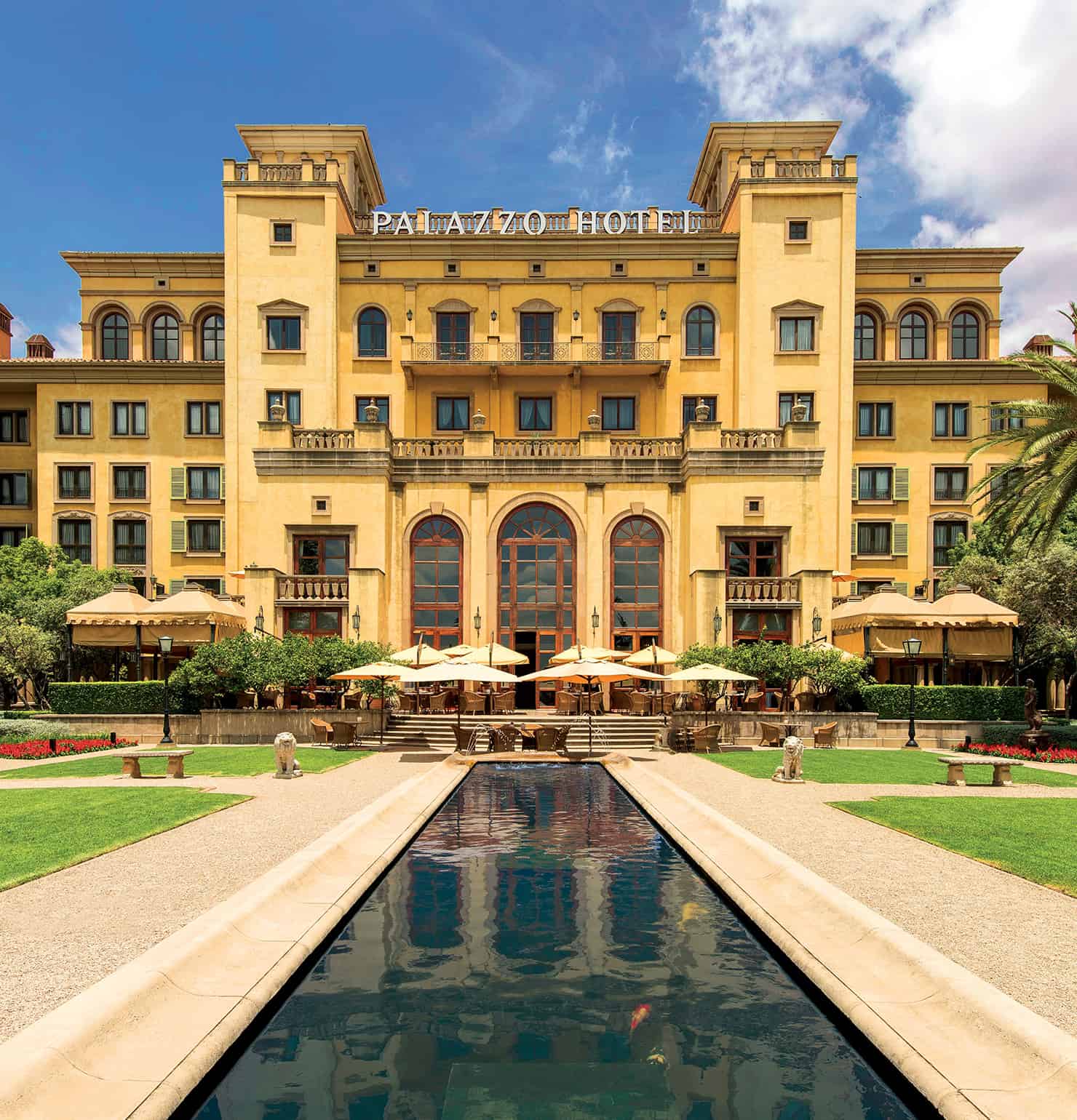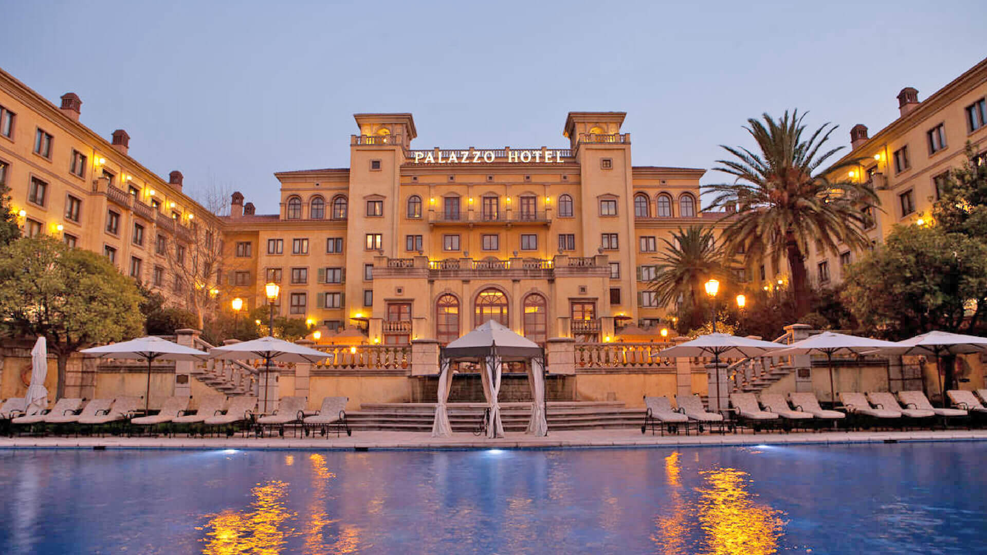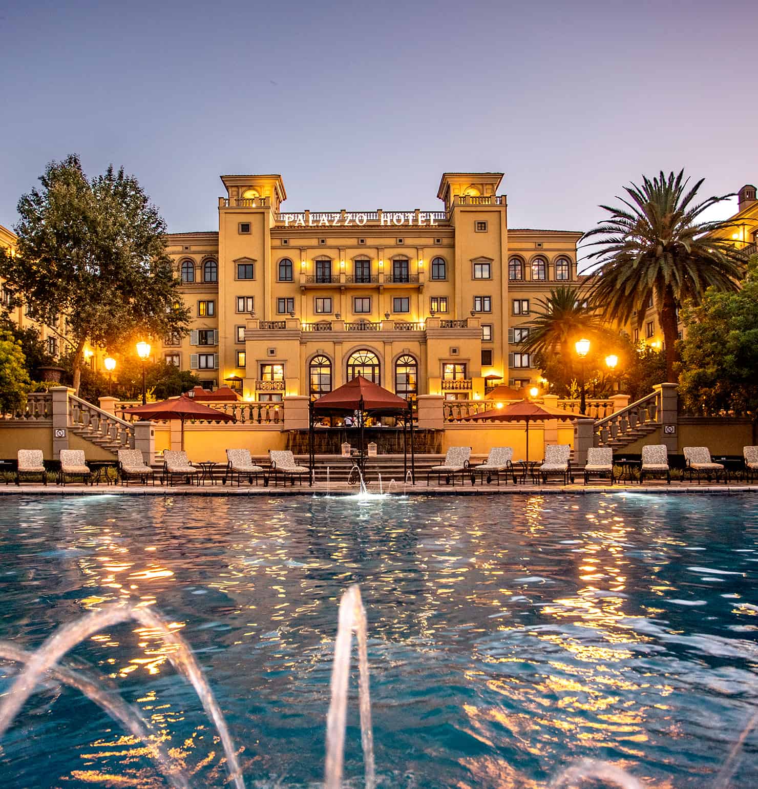 Palazzo Hotel — роскошный рай, построенный в стиле итальянского палаццо, уютно расположен в тихих садах с фонтанами, спланированным по образцу садов Тосканы. Внимательное, индивидуальное обслуживание и близость к захватывающим развлечениям казино Montecasino делают этот отмеченный наградами отель непревзойденным местом в Гаутенге как для деловых путешественников, так и туристов. Роскошные номера этого внушительного дворцового отеля, от уютных номеров категории Superior до пентхауса площадью 400 кв.м, отражают архитектуру в тосканском стиле. Богатая деревянная мебель, мрамор и терракота, хрустальные люстры и исключительно удобное постельное белье дополняются роскошными удобствами и домашним комфортом.