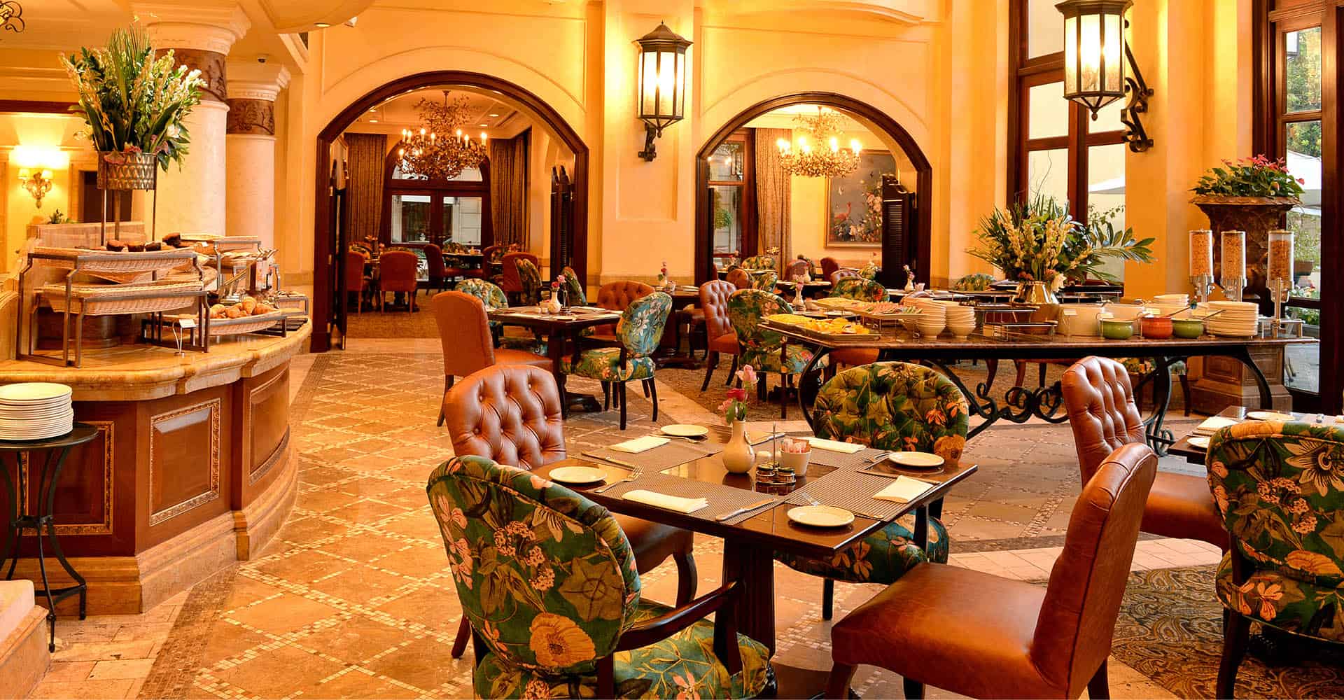 С большой террасы ресторана и двух деревянных площадок открывается вид на впечатляющий пруд с карпами кои, а также на цитрусовые деревья и розы в ландшафтных садах отеля. Независимо от того, предпочитаете ли вы сидеть в крытом зале или наслаждаться теплым южноафриканским солнцем на свежем воздухе, ресторан Medeo предлагает идеальную обстановку для торжеств и изысканных ужинов.