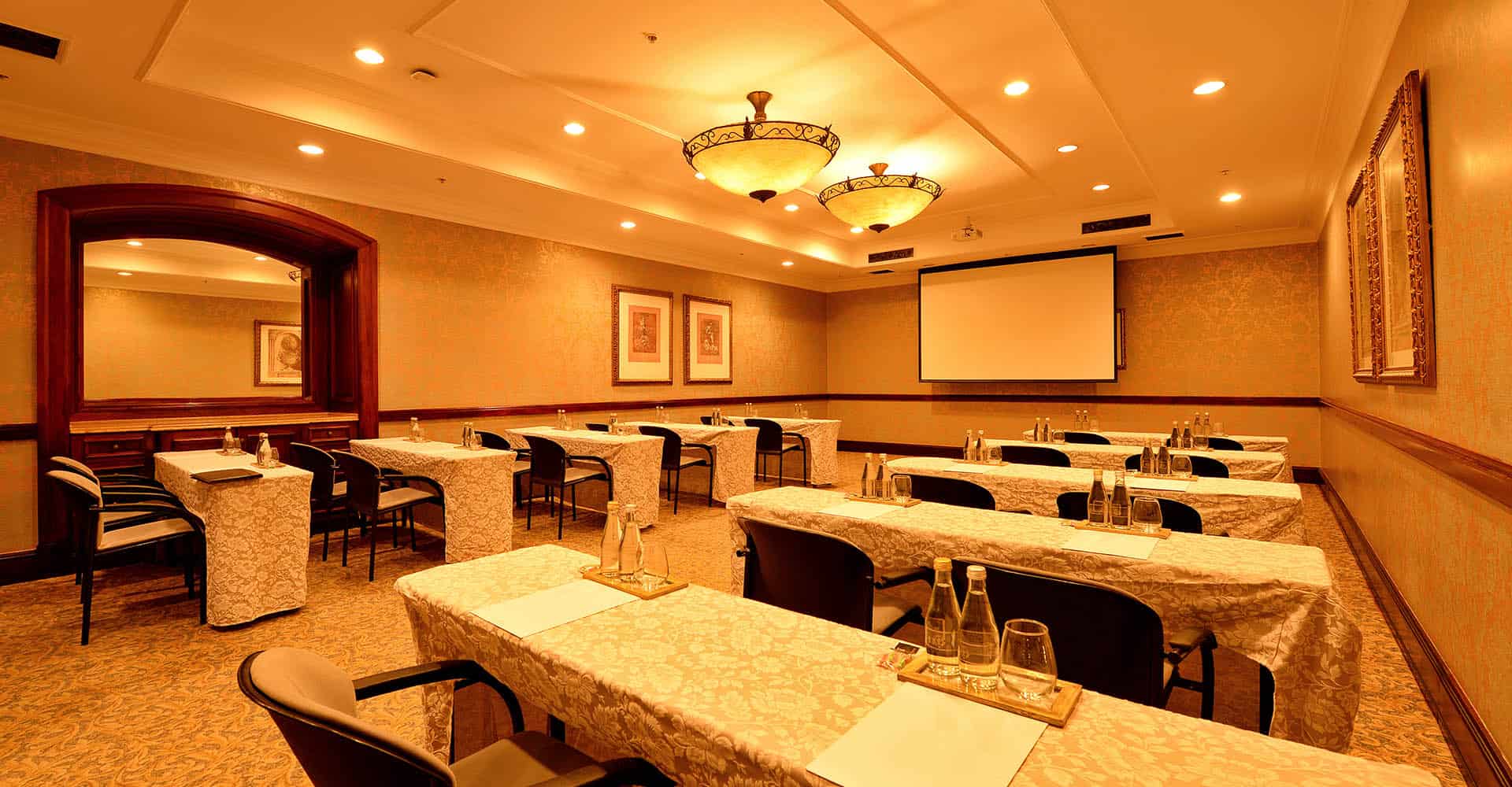 - Castello Room площадью 68 кв.м может разместить от 22 до 50 человек