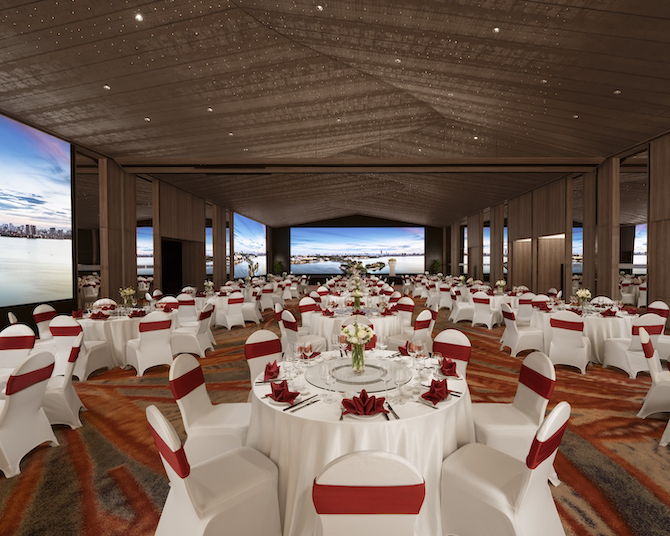 - Pacific Ballroom — флагманский зал без колонн, представляющий собой просторное помещение, которое можно адаптировать под любое мероприятие, что делает его идеальным местом для проведения масштабных банкетов и конференций.