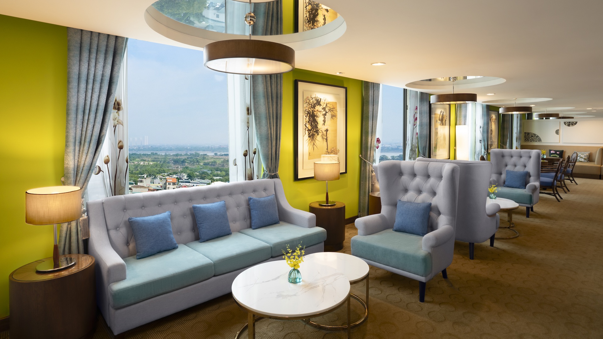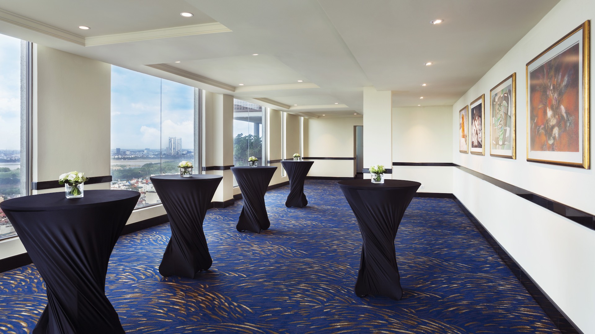 - Hanoi — наполненное естественным светом компактное помещение для встреч. Зал имеет балкон с впечатляющим видом на город, что делает его идеальным местом для небольших встреч или частных дискуссий.