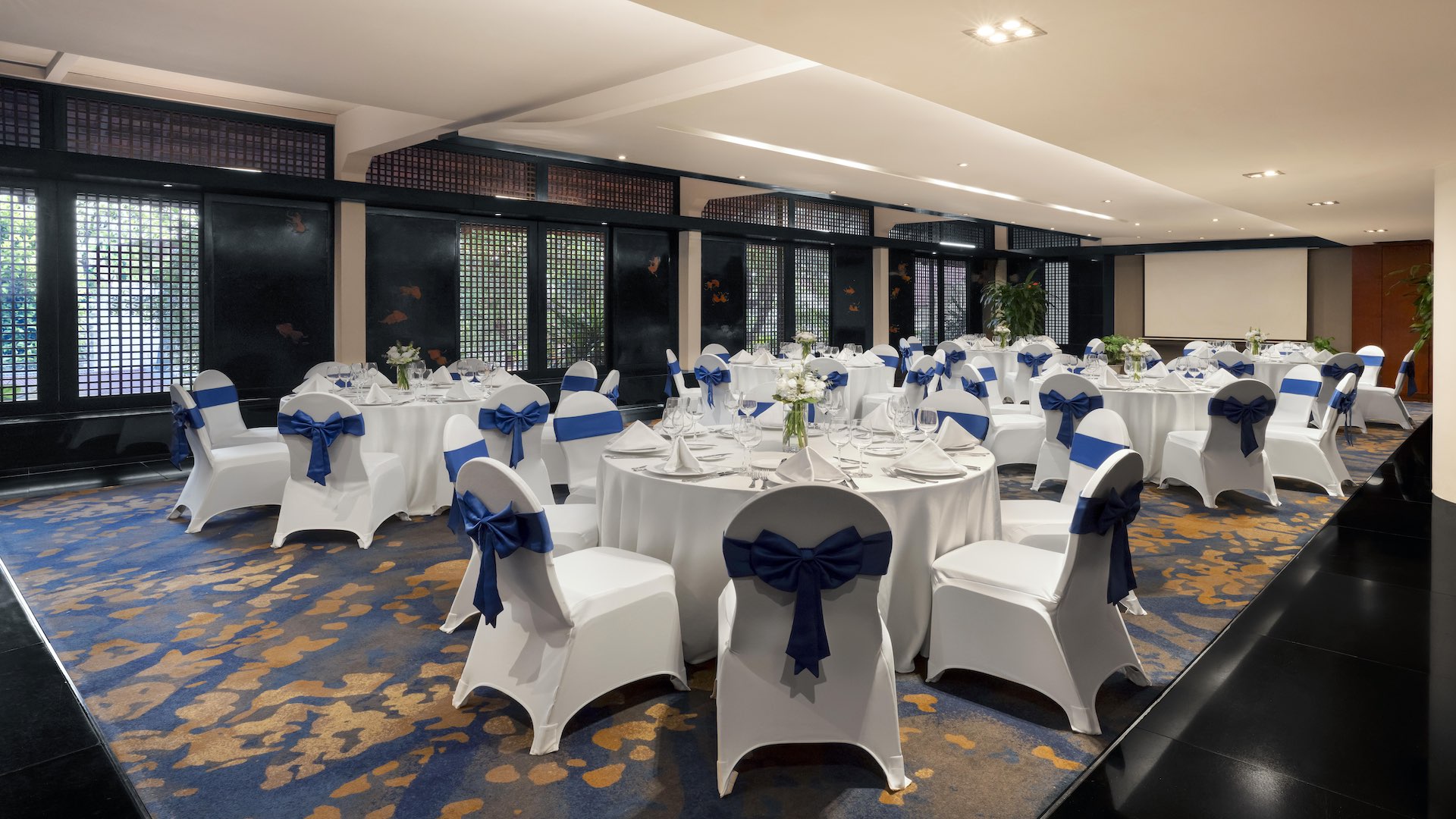 - Hoi An — элегантно оформленное пространство со сдержанным декором в стиле дзен, наполненное обилием естественного света благодаря прозрачным стеклянным панелям. Оснащенный самыми современными технологиями, зал предлагает уникальное место для проведения любых мероприятий.
