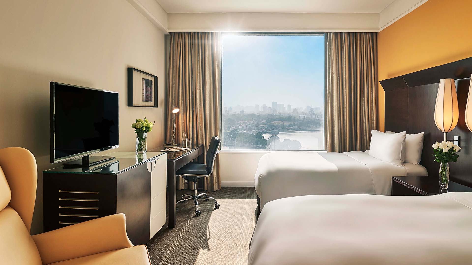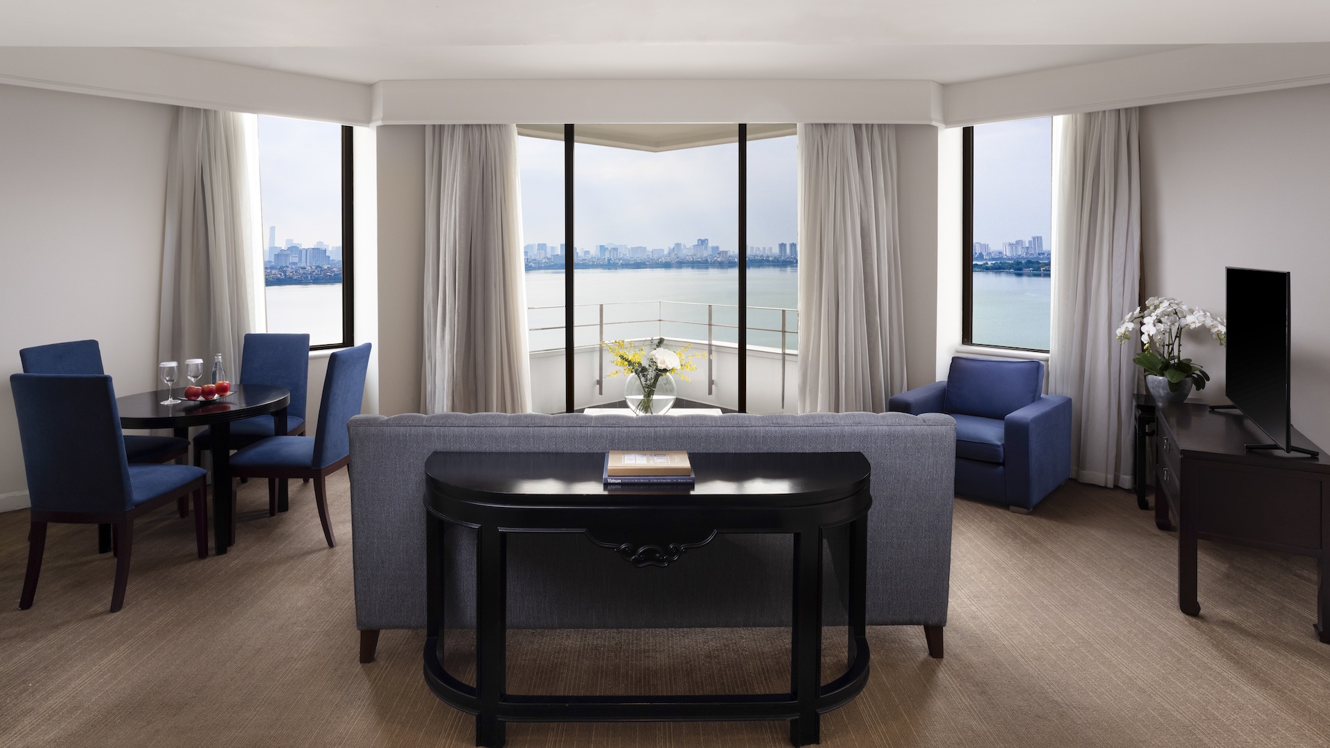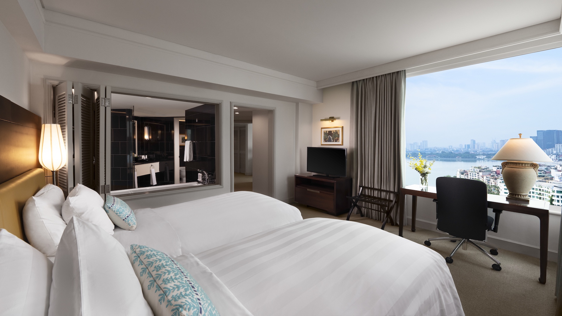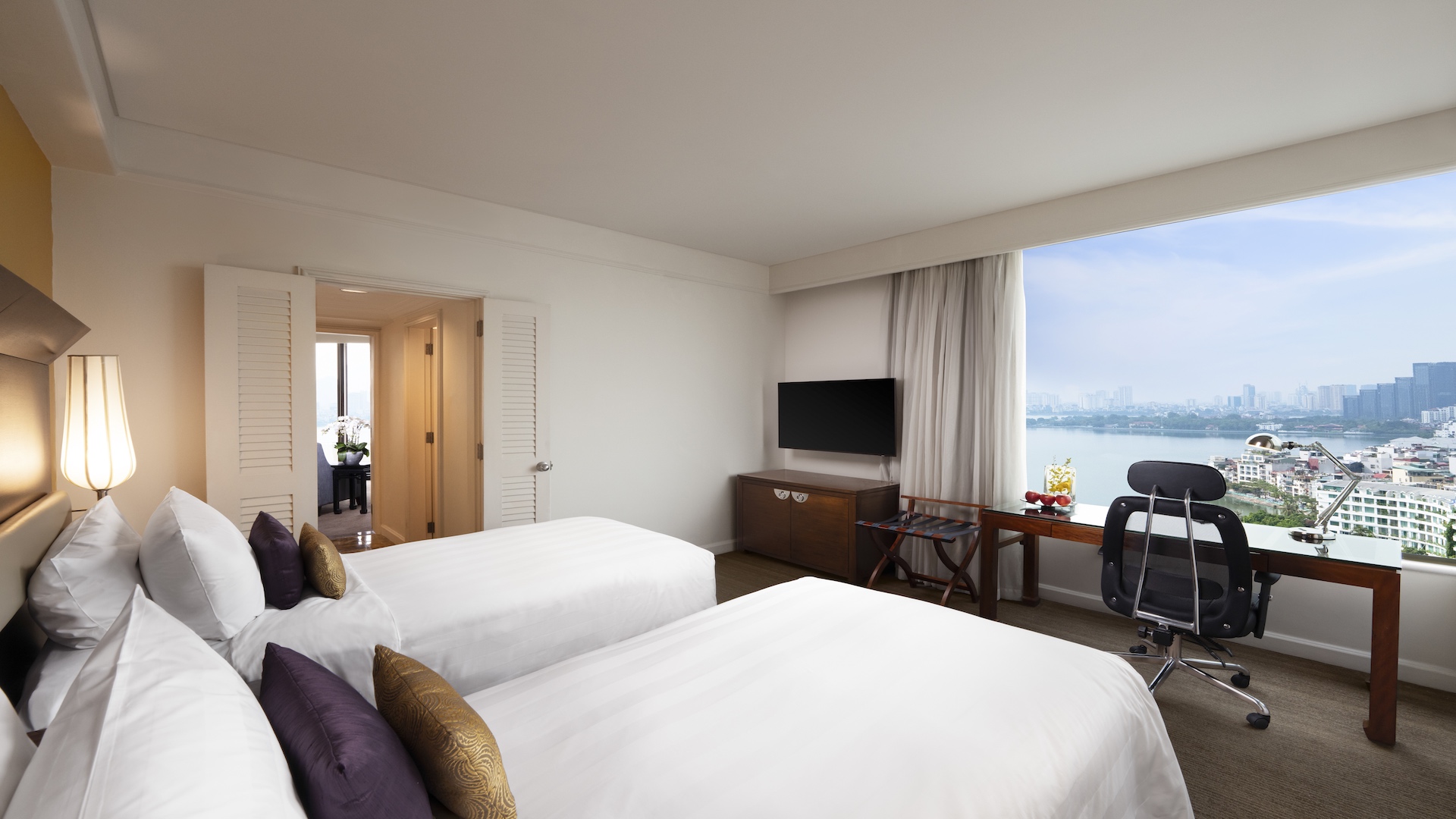 - Deluxe Lakeview Room — просторные номера площадью 35 кв.м, с захватывающим видом на озера West Lake и Truc Bach Lake, состоящие из спальни с одной большой двуспальной кроватью King-size или двумя односпальными кроватями Twin, уютно обставленной гостиной зоны, рабочей зоны с письменным столом, роскошной стильной ванной комнаты открытой планировки с ванной и душевой кабиной с освежающим тропическим душем.