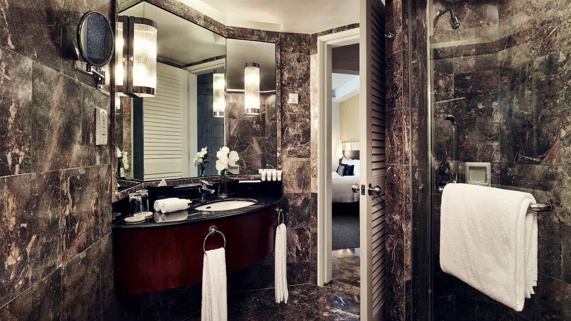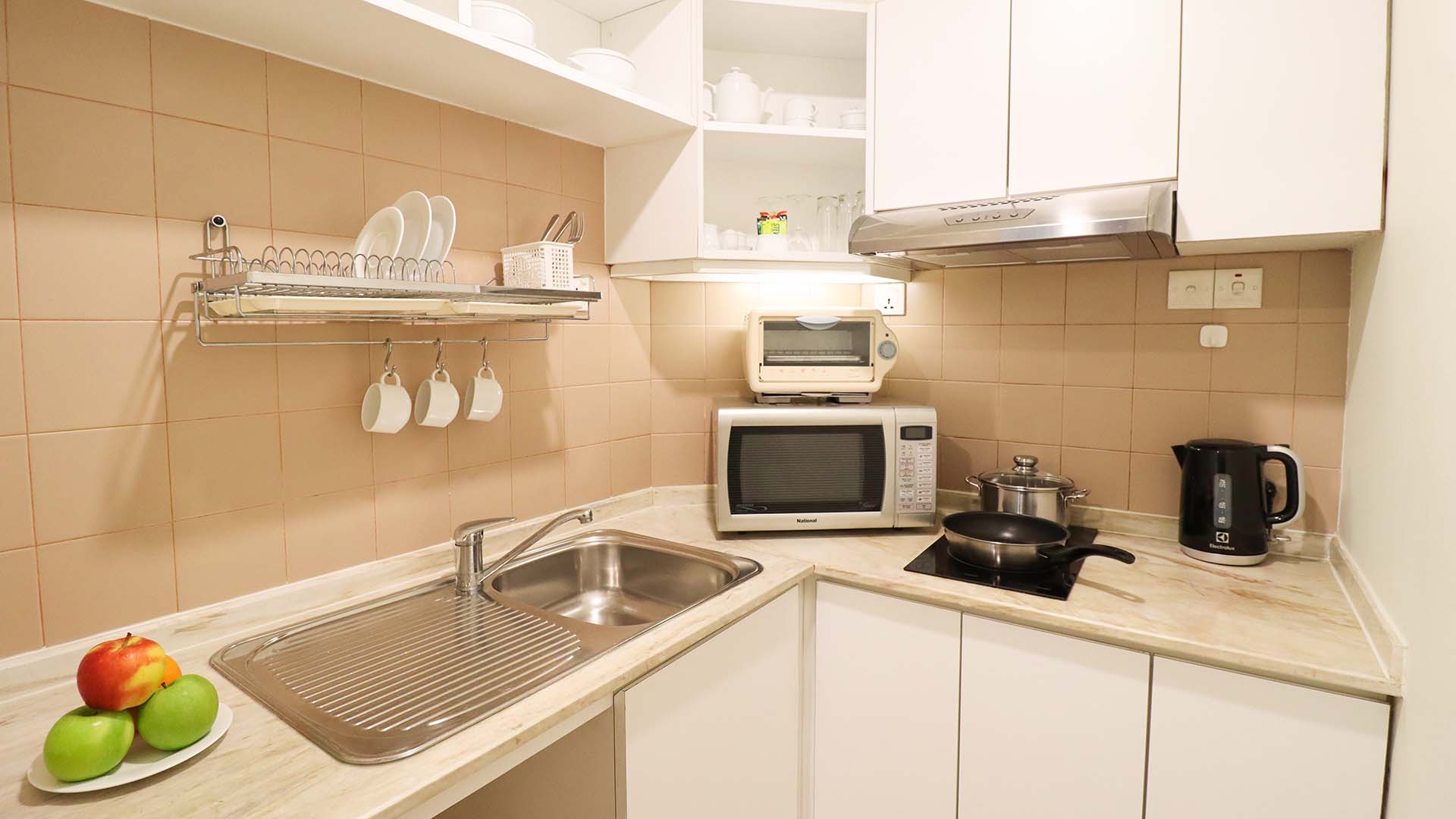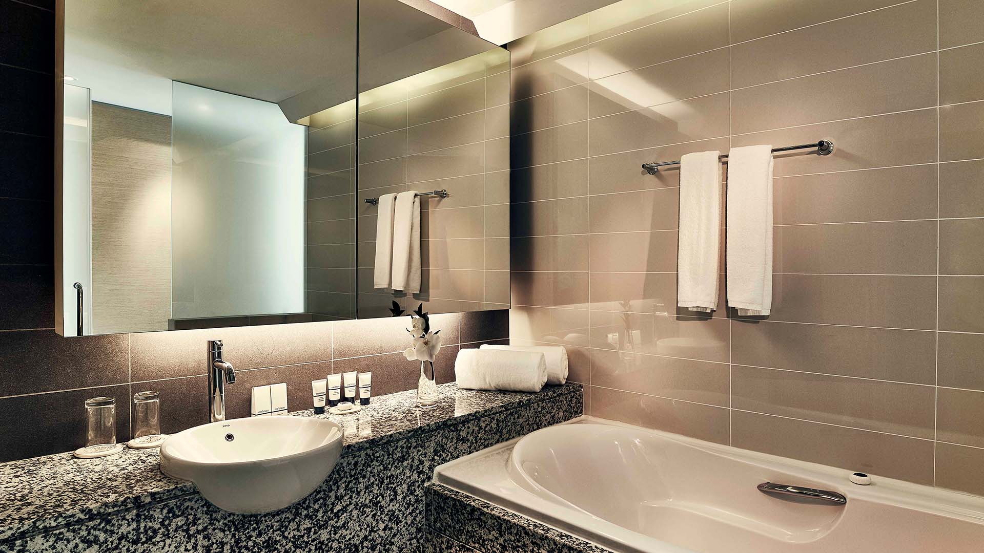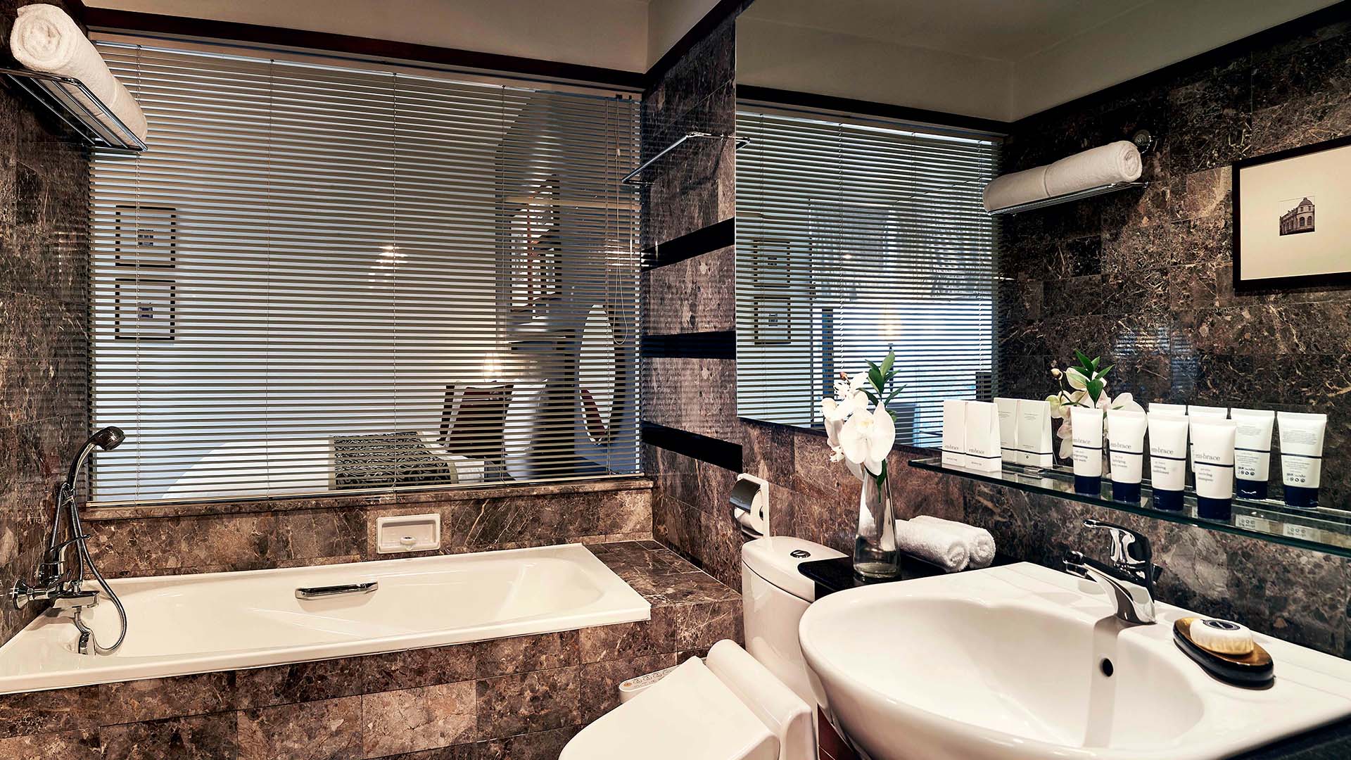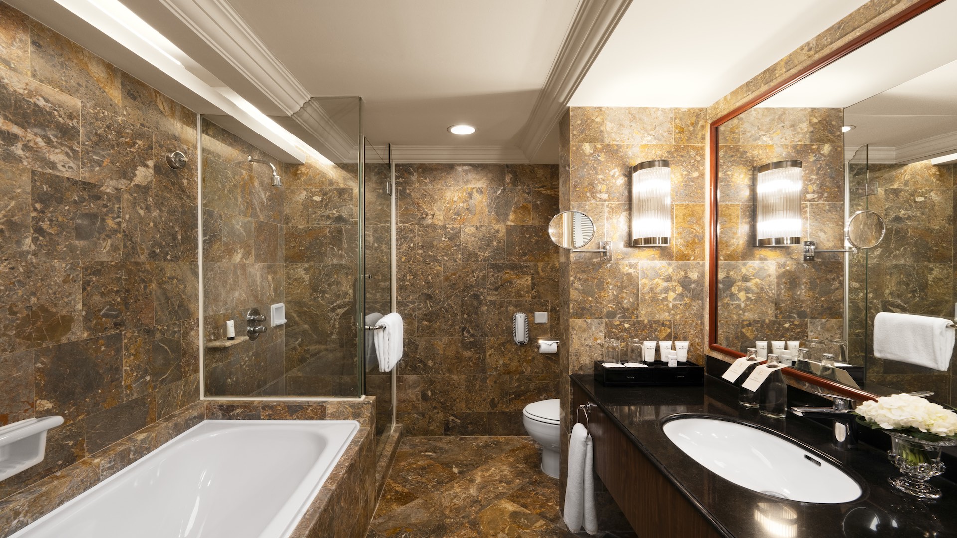 Дополнительно в люксах есть программируемый термостат, домашний кинотеатр с DVD-плеером, стиральная машина и сушилка, утюг и гладильная доска; предоставляется бесплатный онлайн-доступ к широкому выбору газет и журналов; можно воспользоваться общей прачечной со стиральной машиной и сушилкой на каждом этаже. - Two Bedroom Premier Serviced Suite — отличающиеся изысканным дизайном и идеально подходящие для длительного пребывания просторные люксы с обслуживанием площадью 90 кв.м, состоящие из двух спален (две большие двуспальные кровати King-size или одна кровать King-size и двуе отдельные кровати Twin), отдельной гостиной комнаты, столовой зоны с обеденным столом, полностью оборудованной мини-кухни с микроволновой печью, полноразмерным холодильником, индукционной плитой и духовкой, ванной комнаты с глубокой ванной и отдельной душевой кабиной с тропическим душем.