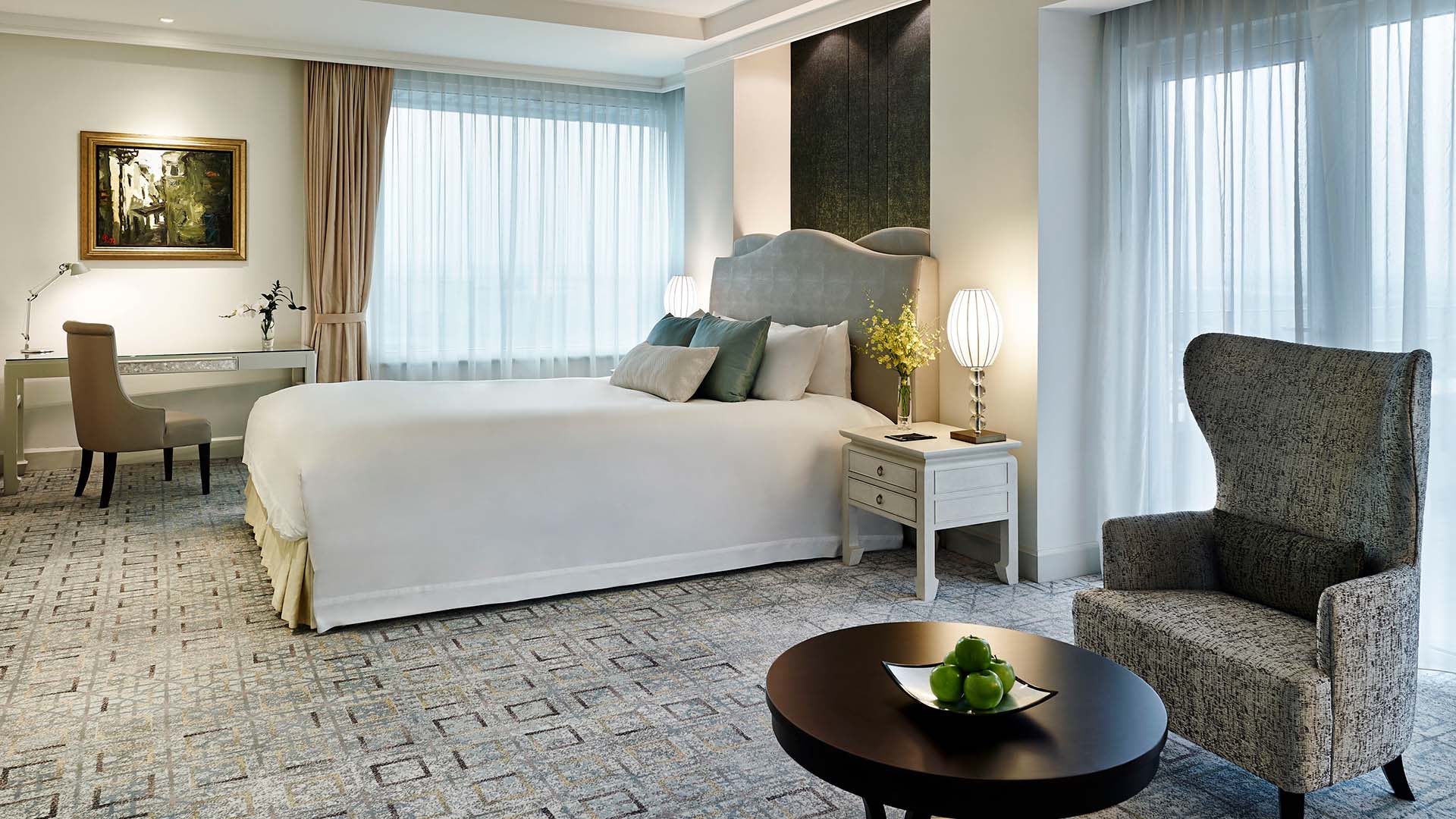 Гостям люксов доступны эксклюзивные привилегии Pacific Club: доступ в лаунж Pacific Club Lounge, где предлагается приветственный коктейль и неограниченное количество безалкогольных напитков, полный завтрак, послеобеденный чай и вечерние закуски. Вы также сможете воспользоваться бесплатной услугой стирки двух вещей каждый день (не суммируется и не распространяется на химчистку). - Premier Suite — стильные просторные современные люксы площадью 90 кв.м, с потрясающим видом на городской пейзаж и озеро West Lake, состоящие из спальни с одной большой двуспальной кроватью King-size, отдельной гостиной комнаты, идеально подходящей для приема небольших компаний, рабочей зоны с письменным столом, отделанной мрамором роскошной ванной комнаты с глубокой ванной и отдельной душевой кабиной.