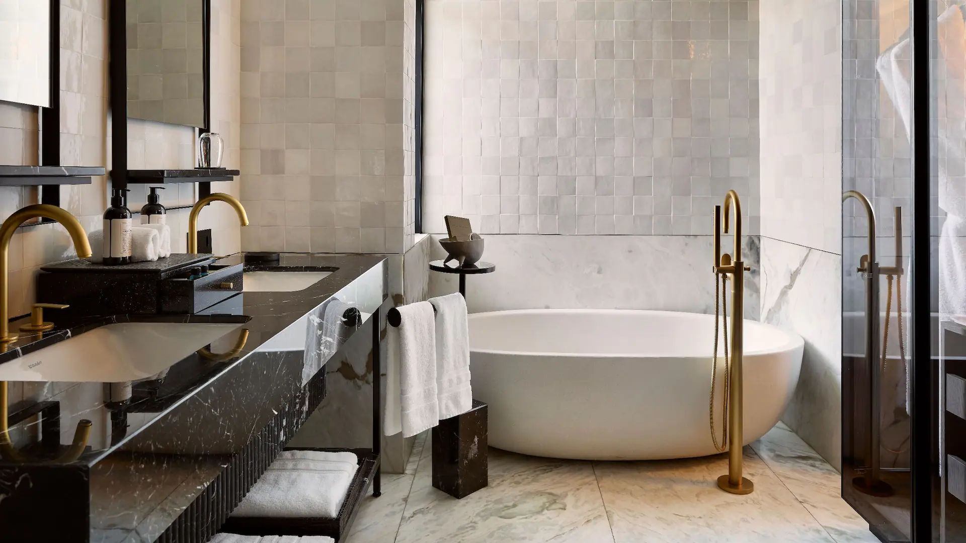 - Rosebank Suite — предлагающий непревзойденную роскошь люксе площадью 42 кв.м, с элегантным декором и эксклюзивными удобствами, состоящий из спальни, рабочей зоны с письменным столом, отделенной от спальни уютной гостиной, современной ванной комнаты с ванной, отдельной душевой кабиной открытой планировки и двумя раковинами с гранитной столешницей (для него и для нее), частной террасы.