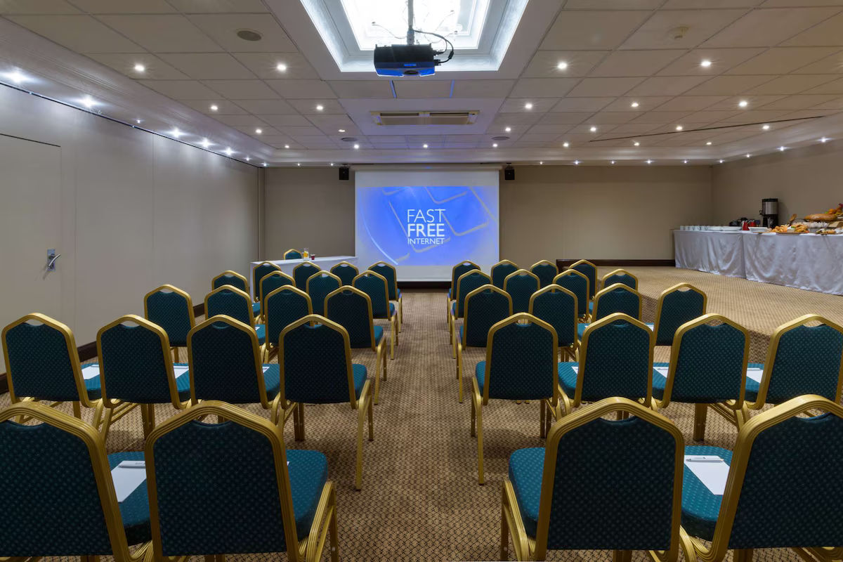 Есть зона для кофейных пауз в перерывах между мероприятиями; доступна услуга кейтеринга.