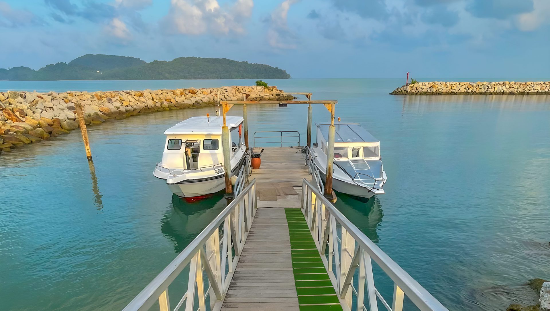 Из международного аэропорта Лангкави отправьтесь в захватывающее 20-минутное путешествие до терминала Ченанг, по прибытии в который вас ждет очаровательная прогулка на лодке до пристани острова Ребак. До курорта от терминала Ченанг на острове Лангкави можно добраться на на регулярно курсирующей лодке за 7 минут (бесплатно для гостей отеля).
