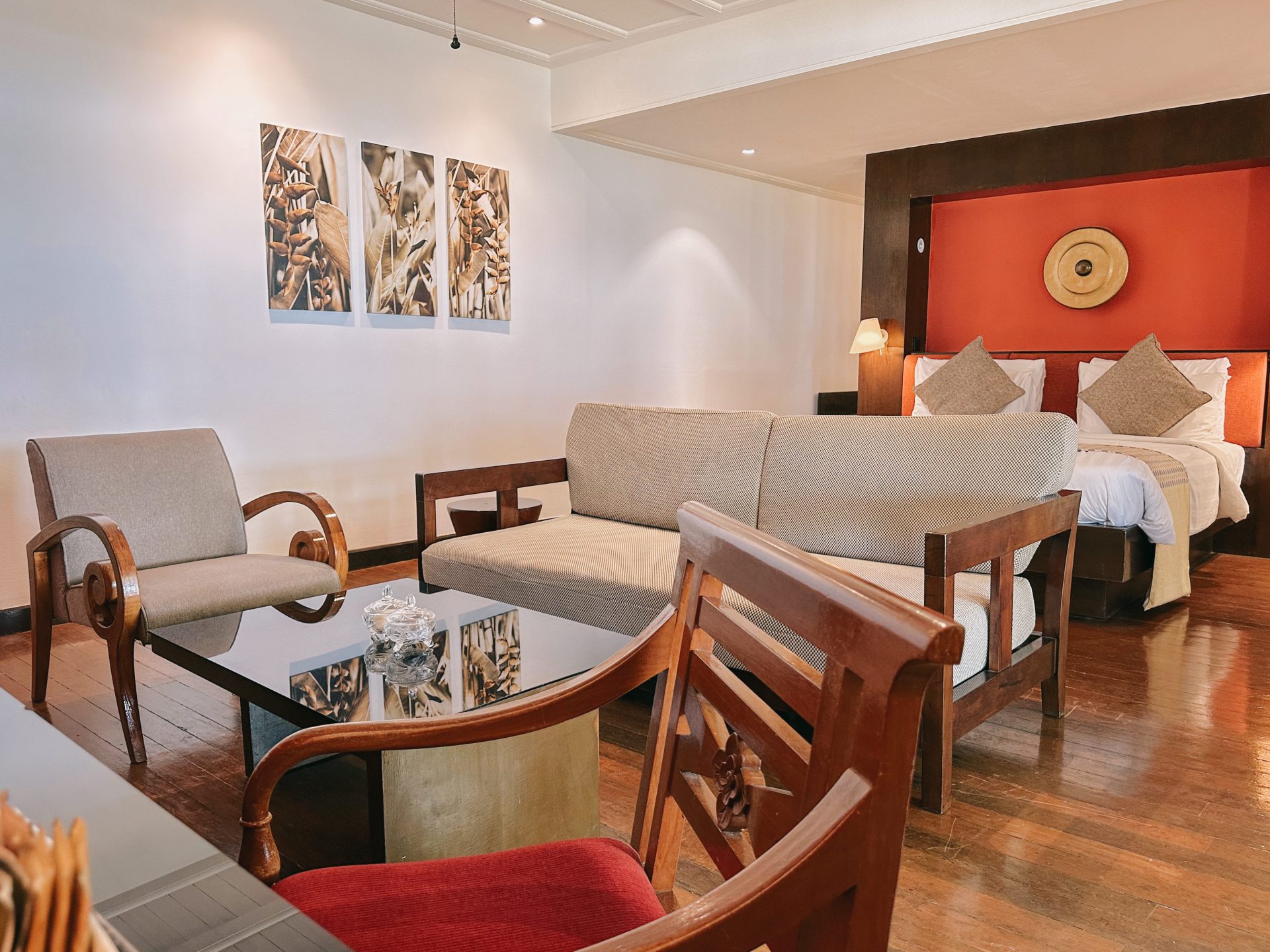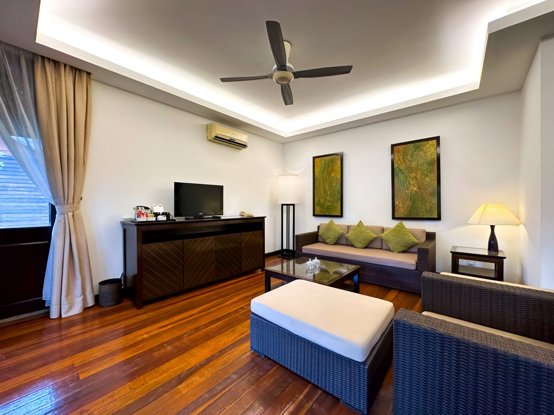 В люксах объединены традиционный малайзийский декор с современным стилем, используя прекрасную древесину ченгал в каждой комнате. Для любителей искусства стены украшены оригинальными работами в технике батик, которые добавляют яркости и красок в интерьер.