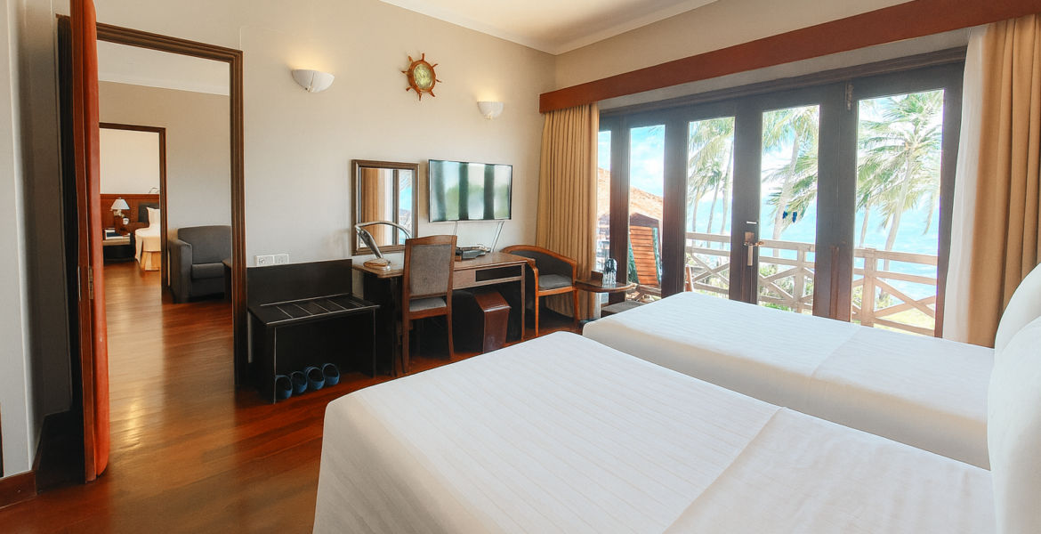 Рассчитаны для максимум 2 взрослых и 1 ребенка. За дополнительную плату доступна дополнительная кровать. - President Suite 2 Bedrooms Sea View — роскошный президентский люкс площадью 79 кв.м, с видом на море, состоящий из двух спален, одна из которых с одной двуспальной кроватью, вторая — с двумя отдельными кроватями Twin, отдельной гостиной комнаты, кухонной зоны, столовой с обеденным столом, ванной комнаты с ванной и душевой кабиной, частного меблированного балкона.