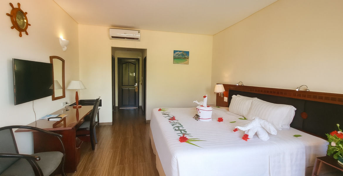 Рассчитаны для максимум 2 взрослых и 1 ребенка. За дополнительную плату доступна дополнительная кровать. - Starcruise Bungalow Garden View — 19 бунгало площадью 33 кв.м, с видом на сад, состоящих из спальни с одной двуспальной кроватью или двумя отдельными кроватями Twin, небольшой гостиной зоны, рабочей зоны с письменным столом, ванной комнаты с ванной и душевой кабиной, частного меблированного балкона.