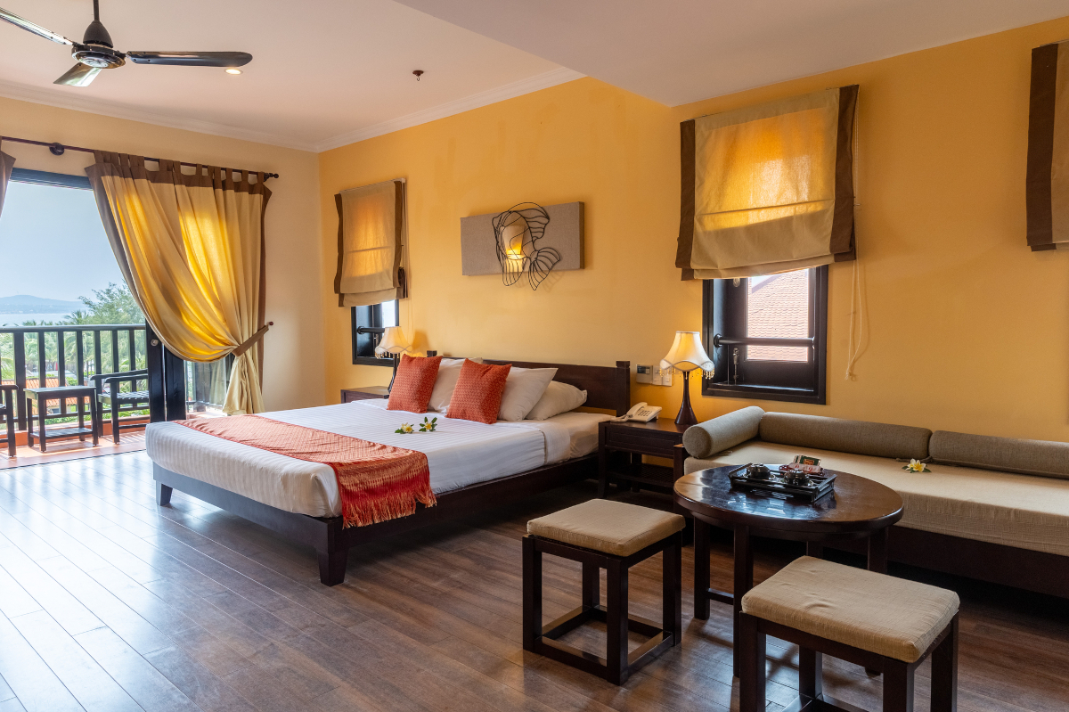 - Deluxe Sea View Room — комфортабельные номера площадью 35 кв.м, с великолепным видом на побережье Муйне, состоящие из спальни с одной двуспальной кроватью или двумя односпальными кроватями Twin, небольшой гостиной зоны, рабочей зоны с письменным столом, современной ванной комнаты, частного балкона.